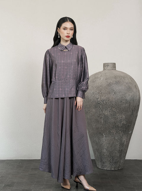 Padukan gaya Raya dan smart casual dengan Nami top. Hadir dengan kerah, model yang simple, dan model lengan bishop yang cantik.
