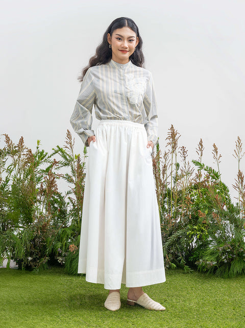 Siluet klasik dengan sentuhan kasual. Elonie Skirt berbahan 100% katun dengan saku samping, memadukan kenyamanan, fungsi dan gaya.