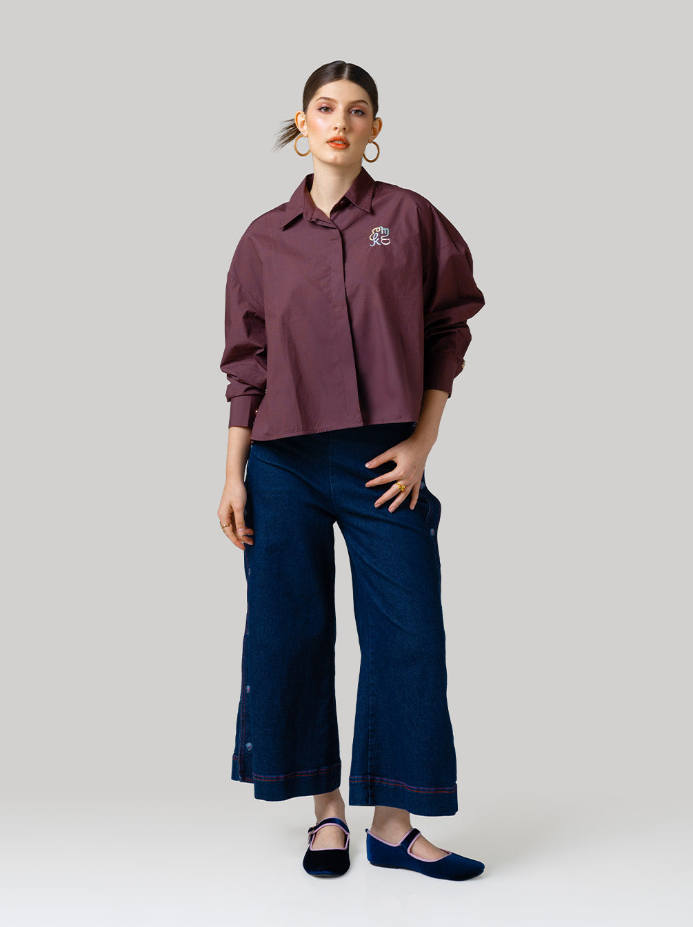 Warna-warna cerah dan netral bertemu di Gale Cropped Top terbaru dengan bordir multicolor monocurve. Kancing emas ciri khas Gale memudahkan beragam styling dengan kenyamanan katun.