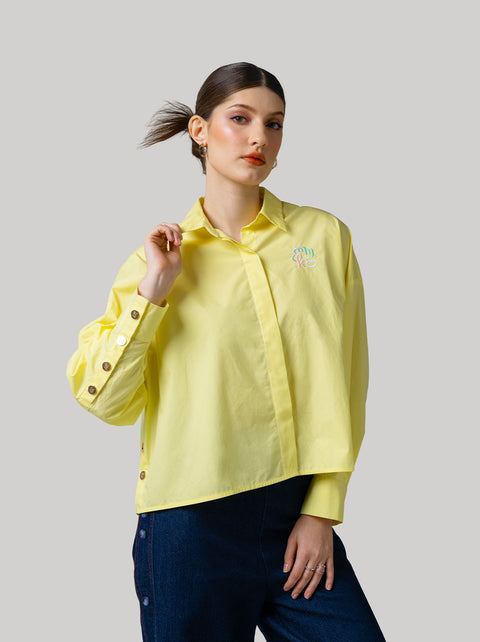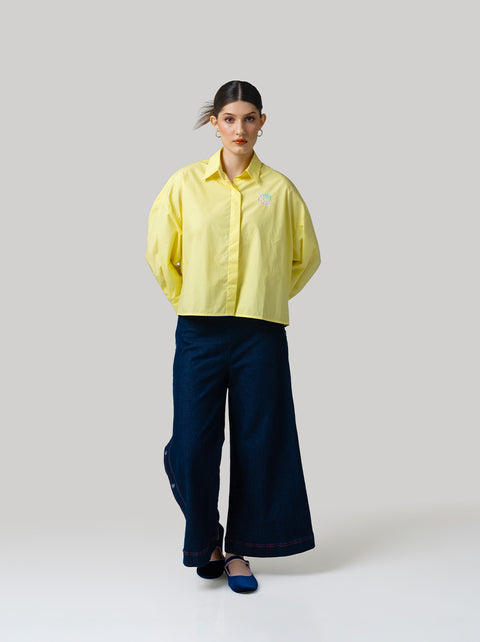 Petal pop meets essential colors on the all new Gale Cropped Top, featuring multicolor Kami monocurve embroidery. The signature golden buttons let you dress it up, dress it down, anytime with our signature cotton comfort.