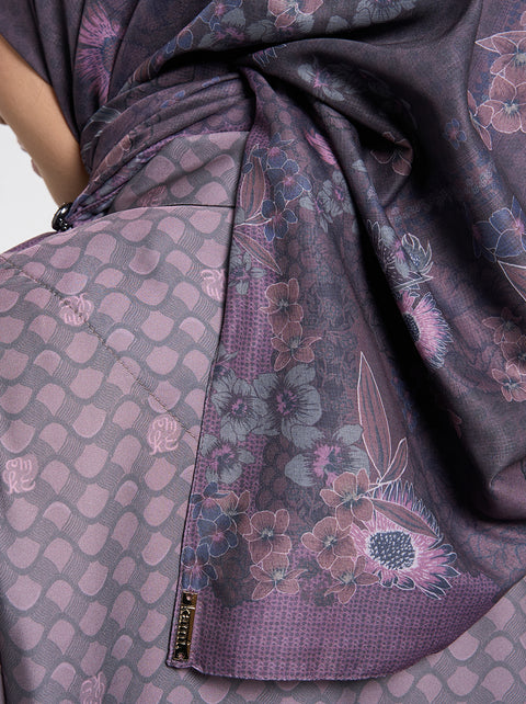 Athemina scarves in seven dusky colorways to complete your Raya look. The lightweight poly voile material adorned by ornate florals, illustrating the strong family values in Raya tradition.
