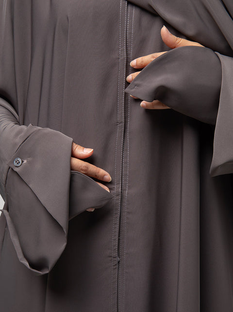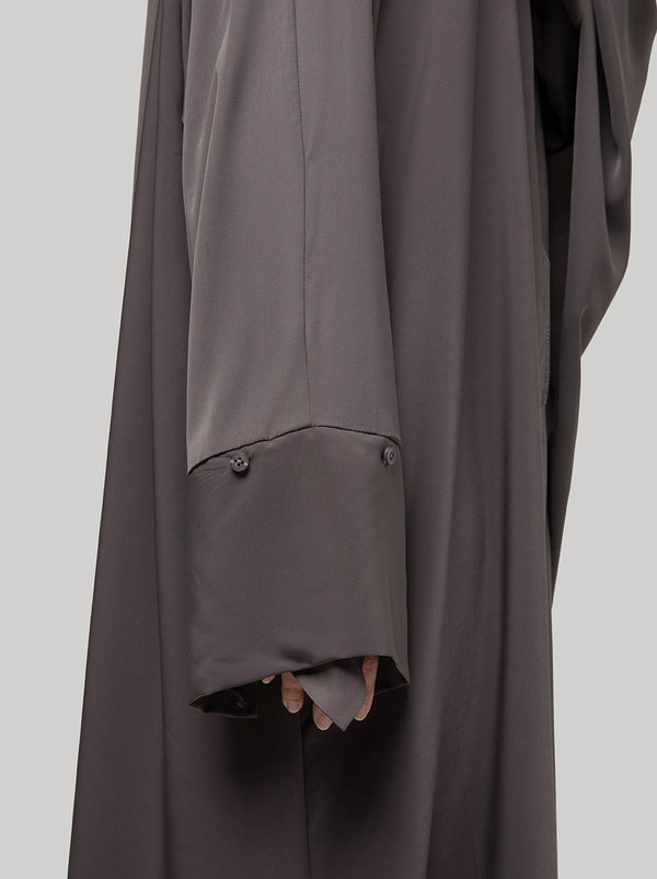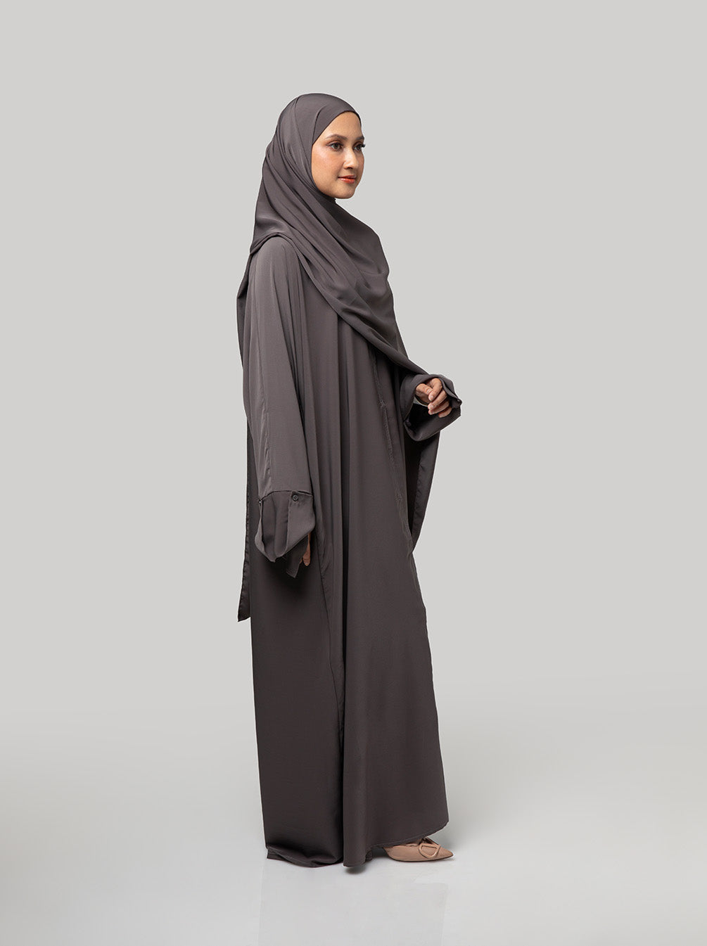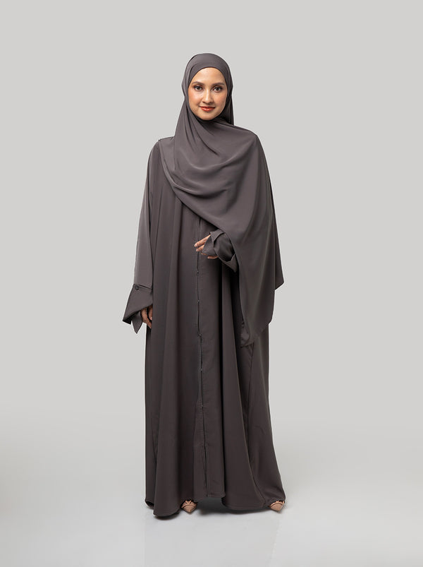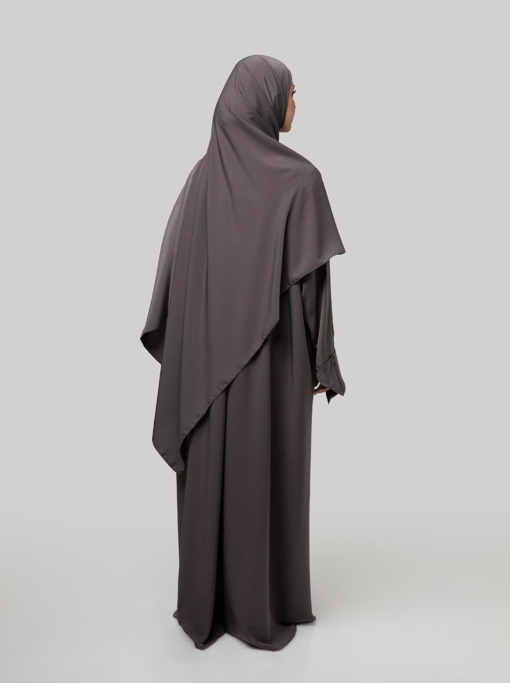 Two looks, one effortless piece. Azyara Abaya is a 2-in-1 abaya–long outer with front snap buttons, designed in a flowy and simple silhouette. finished with adjustable cuffs for ease and versatility.