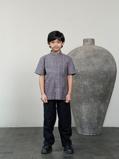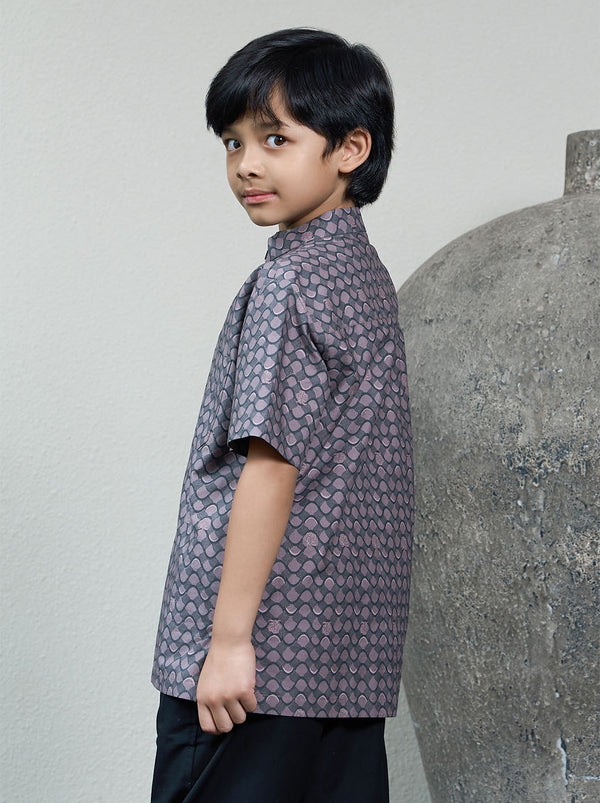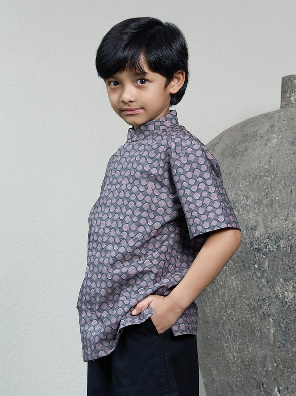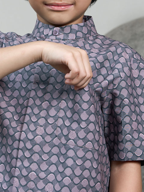 A traditional Raya option for boys. With short sleeves, and Kami. monocurve prints in 100% cotton. The hidden buttons give a neat and clean look.
