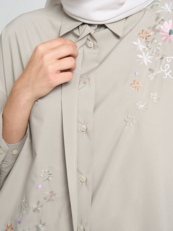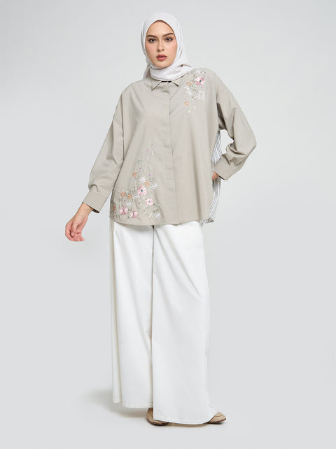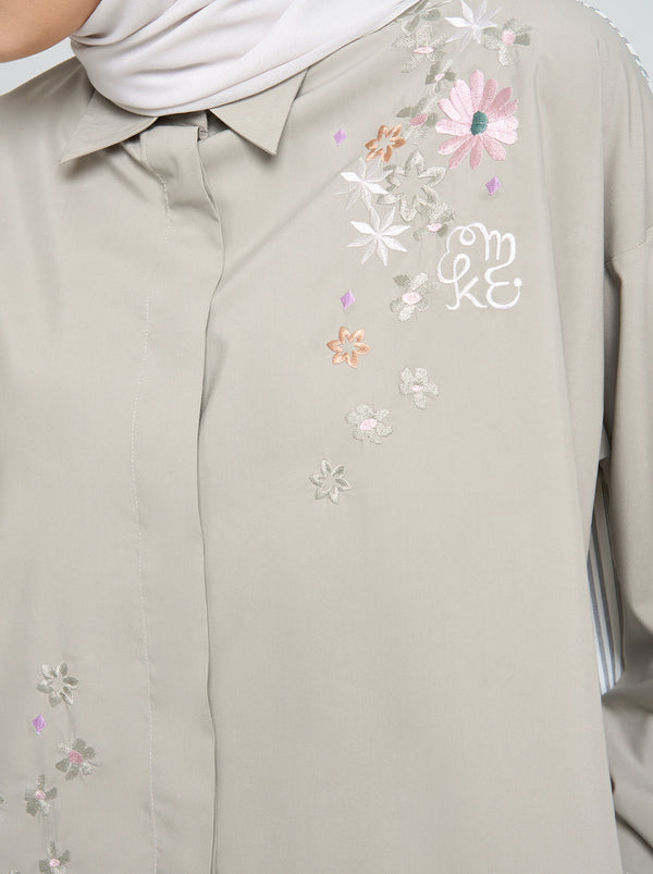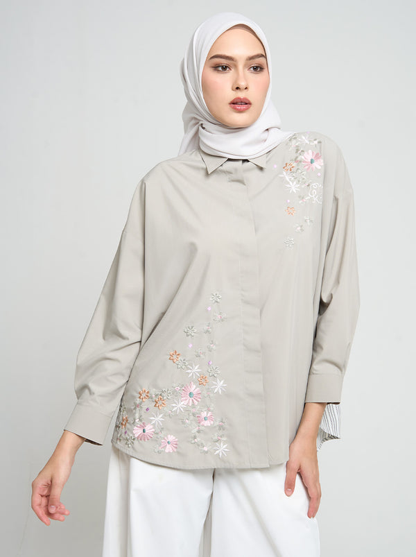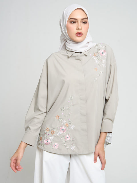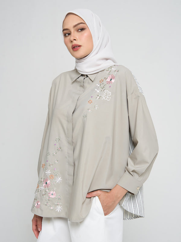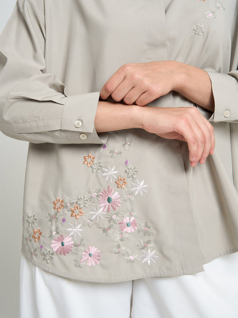 BRIA EMBROIDERY FLOWER TOP KHAKI