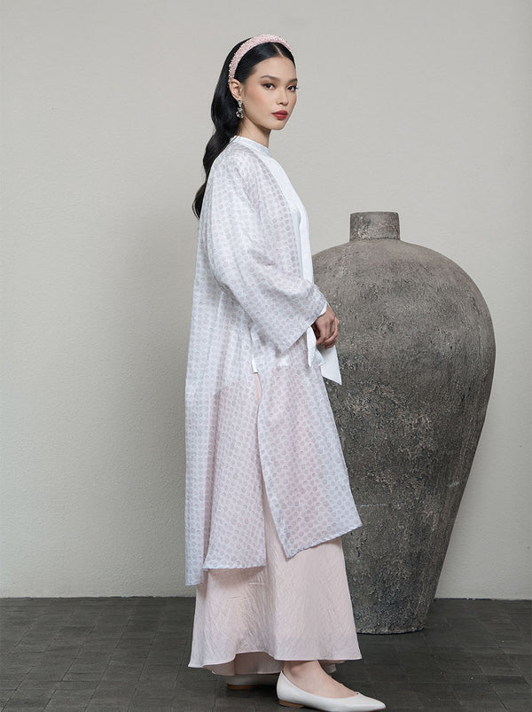 Lengkapi outfit polosmu dengan Eirene outer. Cocok untuk berbagai acara dengan gaya kimono yang nyaman dan bahan semi-sheer.