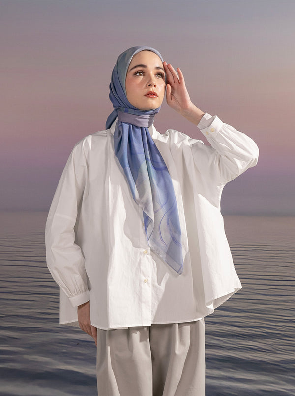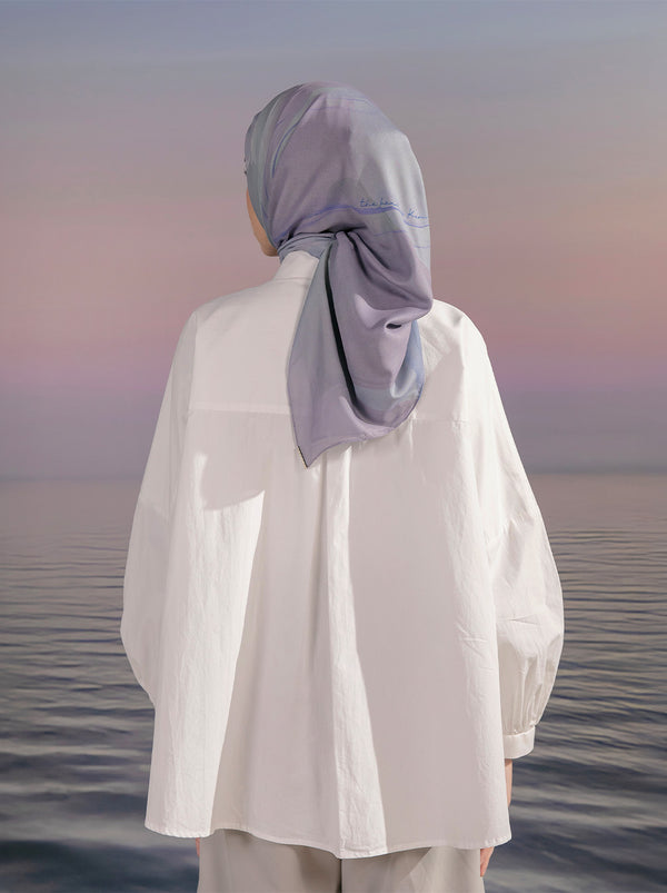 Kemaja katun klasik tampil beda dengan detail-detail cantik Elline top: bordir Kami. monocurve, tab berbentuk hati dan lipit yang mepercantik bagian belakang kemeja.