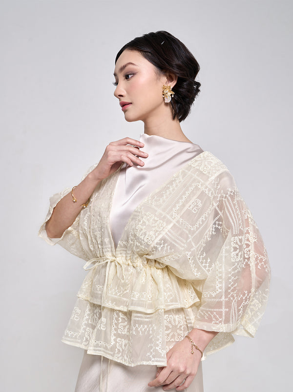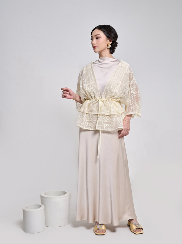 Lengkapi gaya romantismu dengan Ella outer. Bahan bordir dan potongan berlayernya akan memberi dimensi untuk berbagai gaya.