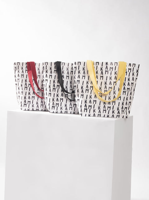 It's not just any shopping bag, it's a daily essential! The Kami. Essential Tote is designed to be lightweight, waterproof, and fit all your daily needs. Stay stylish with three different strap color options and the iconic Kami. Monogram.