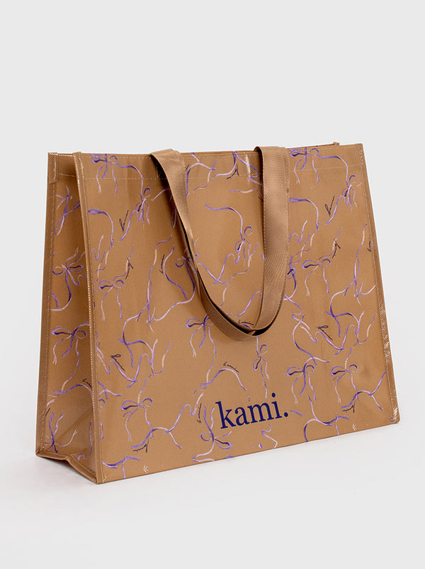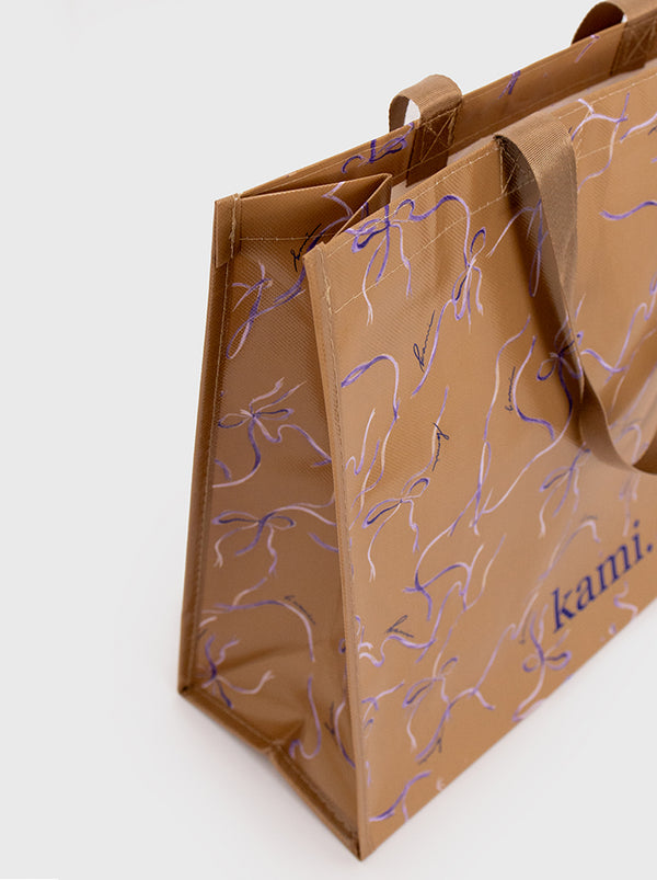 Tas belanja yang serbaguna untuk membawa berbagai barang! Dibuat dari bahan non-woven laminasi yang tahan air, Florcita Tote Bag menampilkan motif pita yang trendi.