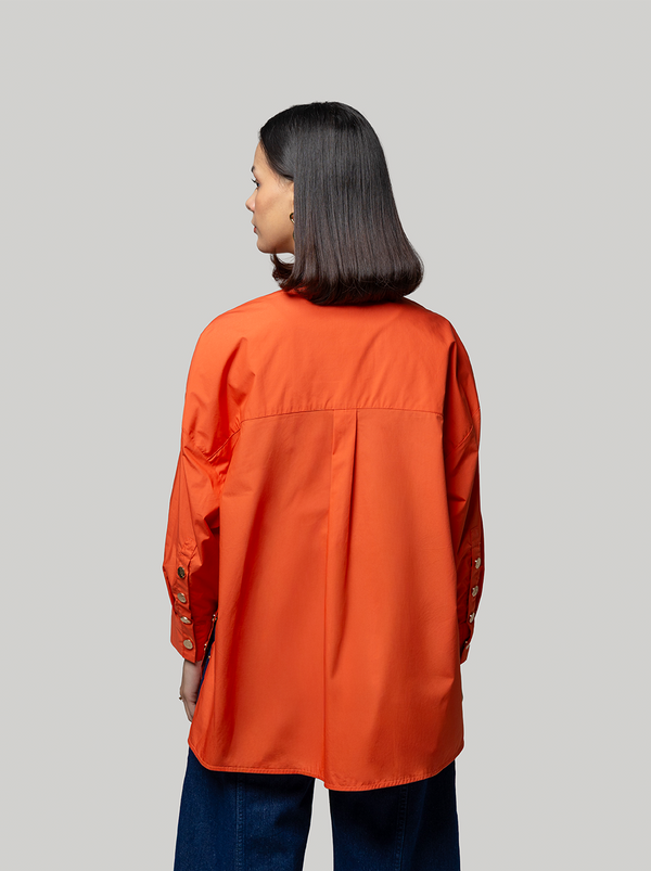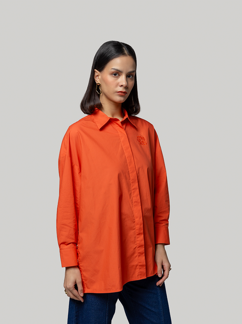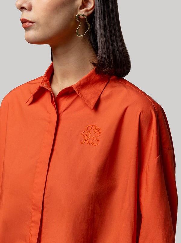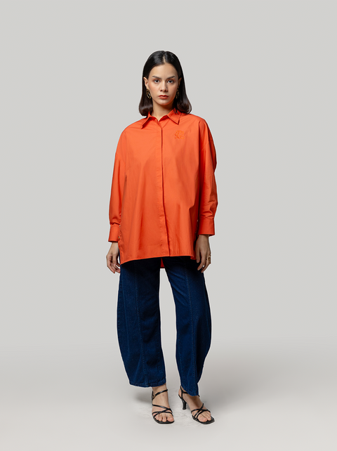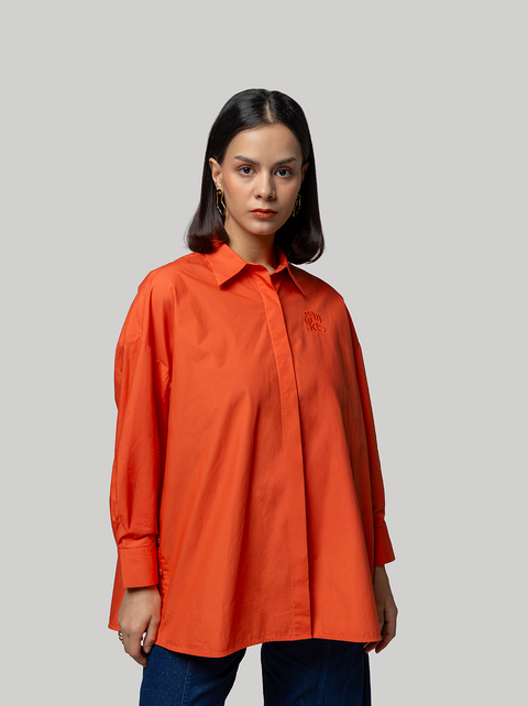 The Gale Oversized Top stands out with its vibrant colors and detailed Kami Monocurve embroidery on the front, adding an artistic touch. Side slits with button clip details give it a modern edge, making it a bold and stylish choice for any occasion.