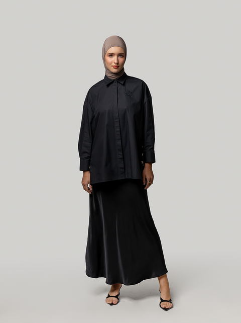 Gale Oversized Top tampil menawan dengan warna-warna cerah dan bordir Kami Monocurve yang artistik di bagian depan, memberikan sentuhan elegan. Detail kancing klip pada belahan samping menambah kesan modern, menjadikannya pilihan yang berani dan stylish untuk berbagai kesempatan.