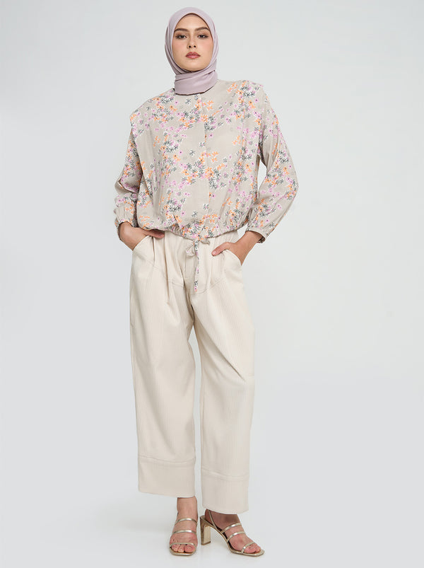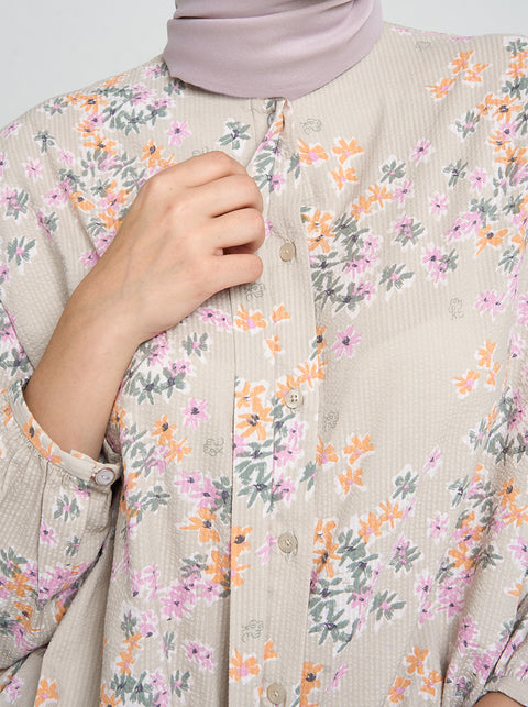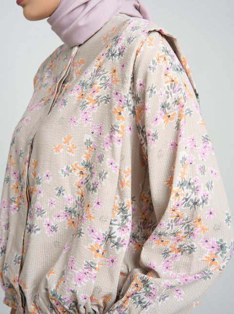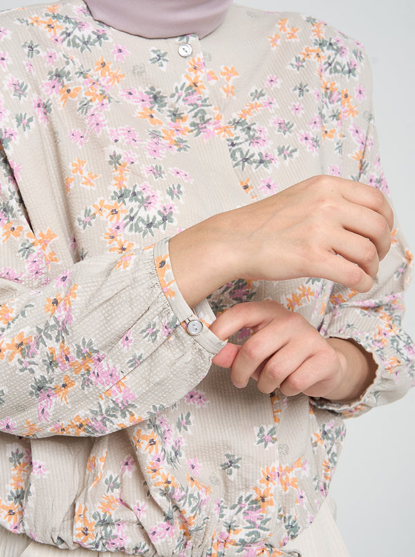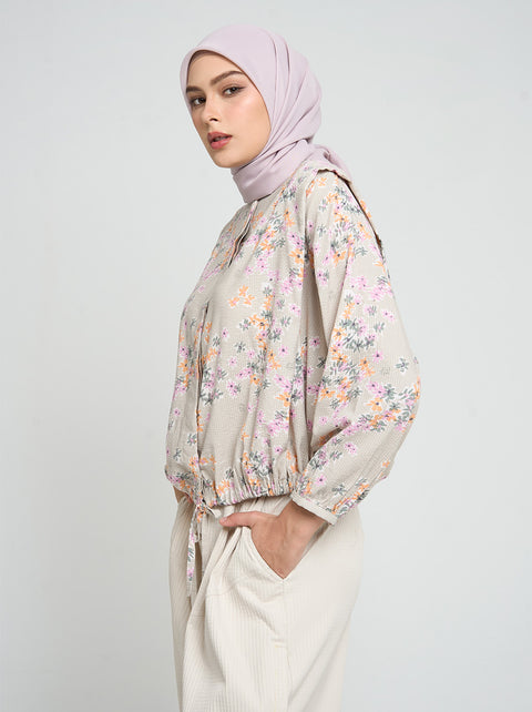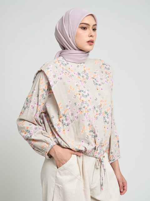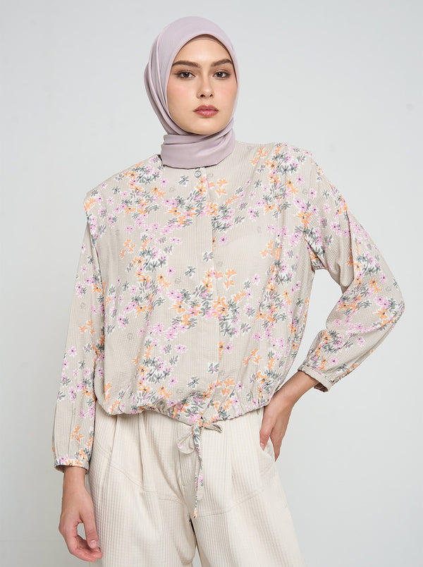 Made out of the ironless and breathable seersucker material, Galina is the perfect daily top. Featuring playful details, from the dainty floral prints, boxy silhouette to bottom drawstring.