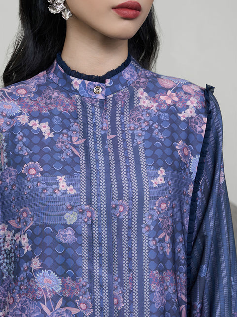 HANIYA RUFFLED TRIM TUNIC NAVY