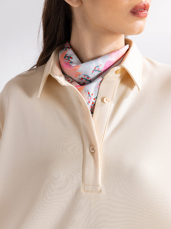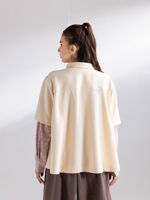 90s flair is back in Haze top, with polo-over-shirt illusion featuring Katla Linear pattern.