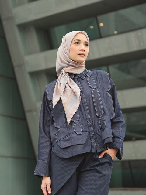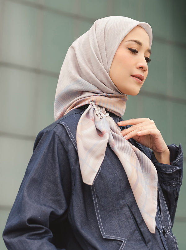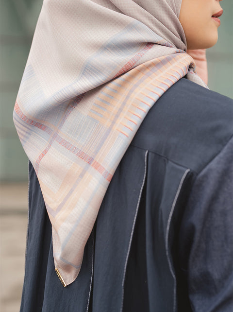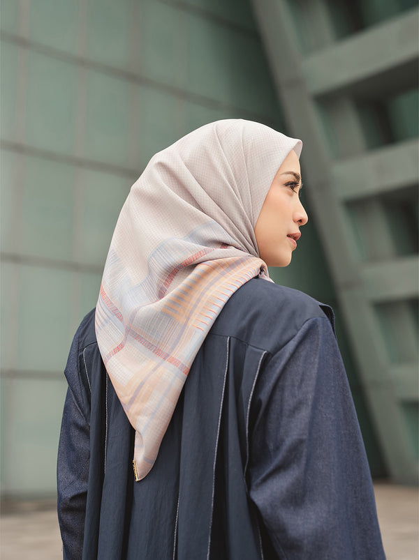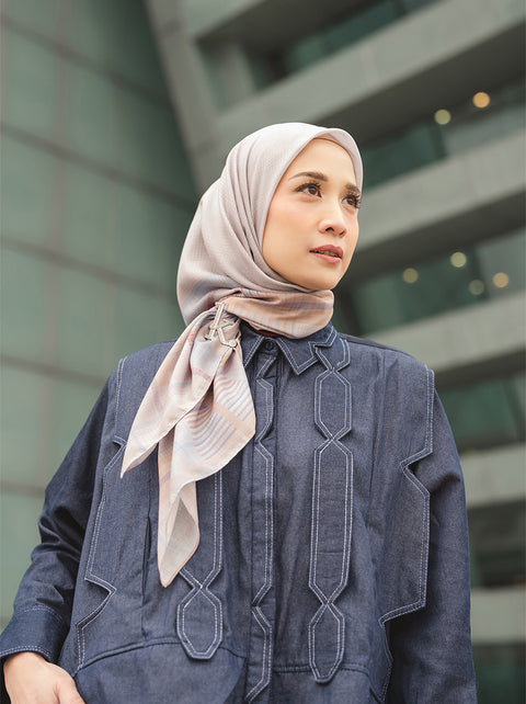 Hema scarf yang minimalis terinspirasi dari garis desain modern dan arsitektur perkotaan sebagai pengingat akan progres dan kemajuan.