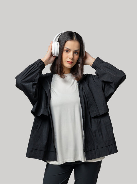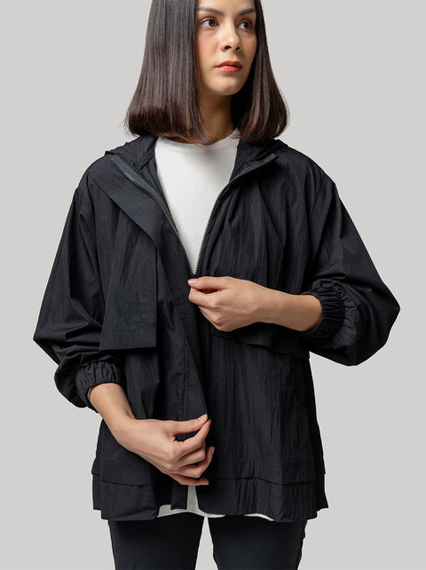 Stay stylish on and off training with Thriva Parka Outer. Featuring covenient zippered side pockets, and hoodie that can be tucked in neatly. The layering details at the front and the back create beautiful movement as you thrive in your workout.