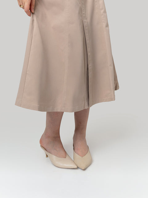 A classic A-line skirt to add structure to your flowy looks. Comes with front slits and elastic waistband for comfort.