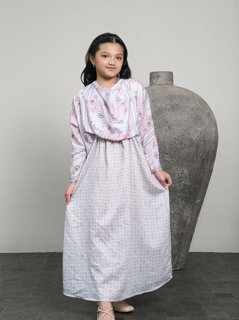 LYRA GATHERED KIDS DRESS SILVER PINK