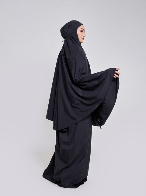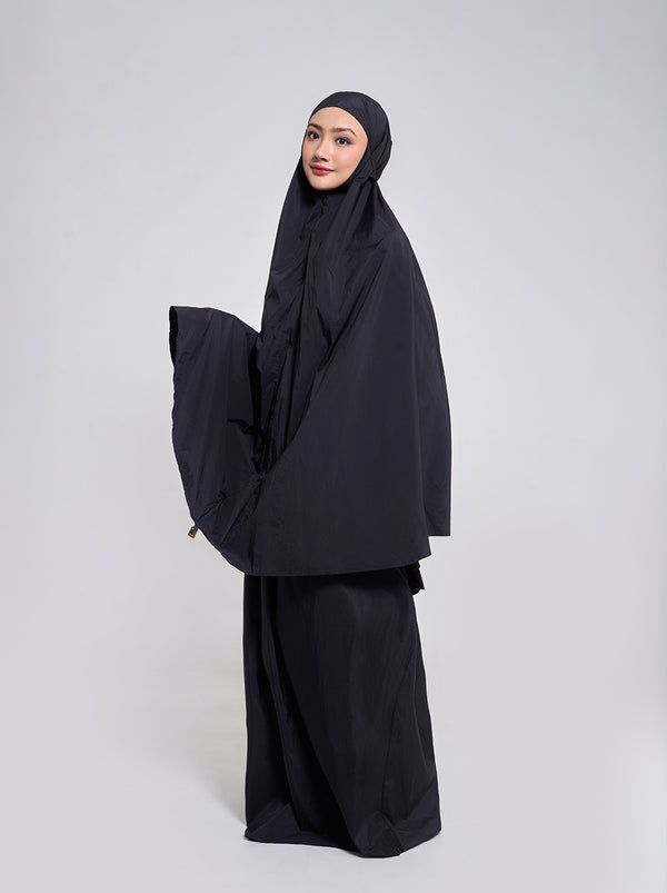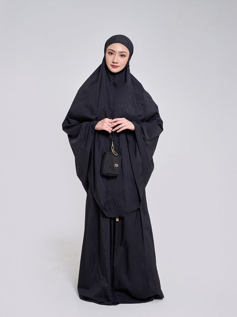 Mafaza prayer set dengan bahan yang ringan, menyatukan kebutuhan dengan detail khas Kami. yang mewah. Wristlet dan kait metal yang bisa dilepas menambah gaya dan kepraktisan.