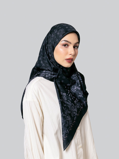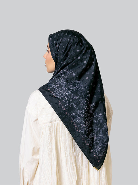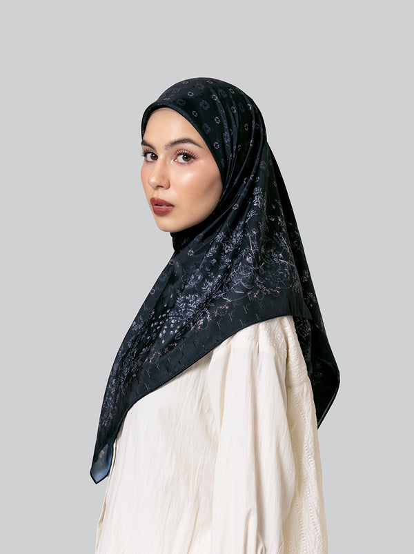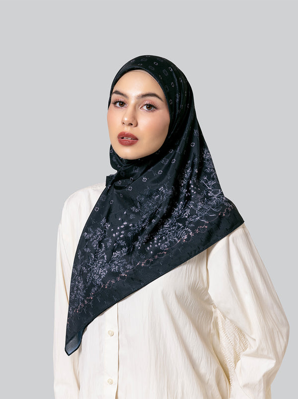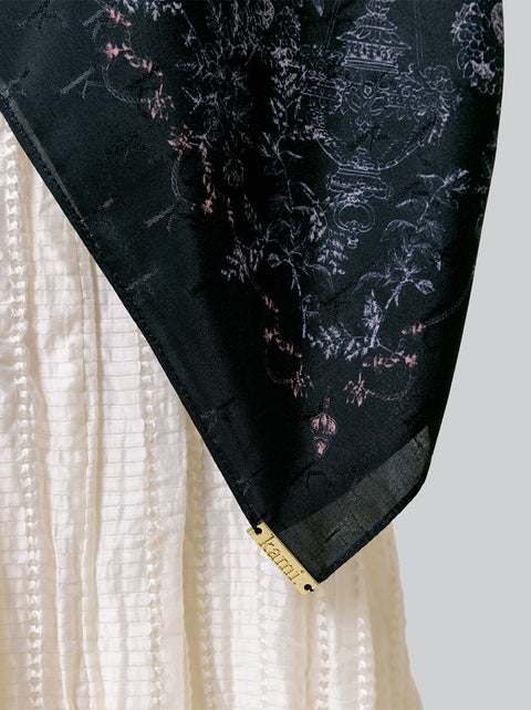 Scarf bagi penyuka gaya simple, Nola Scarf hadir dengan warna-warna netral, monogram dan motif floral kecil dalam bahan jacquard Kami.