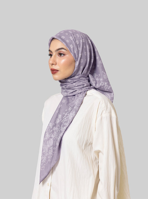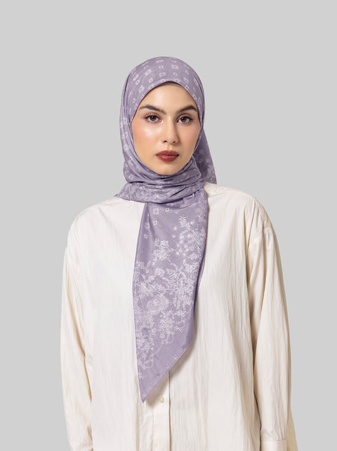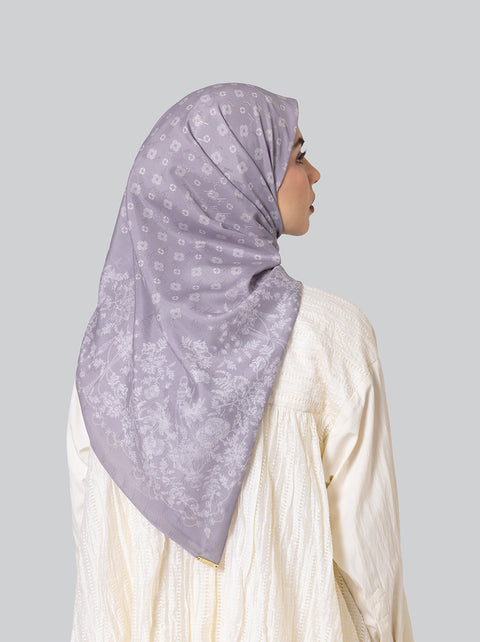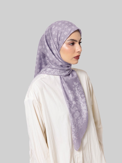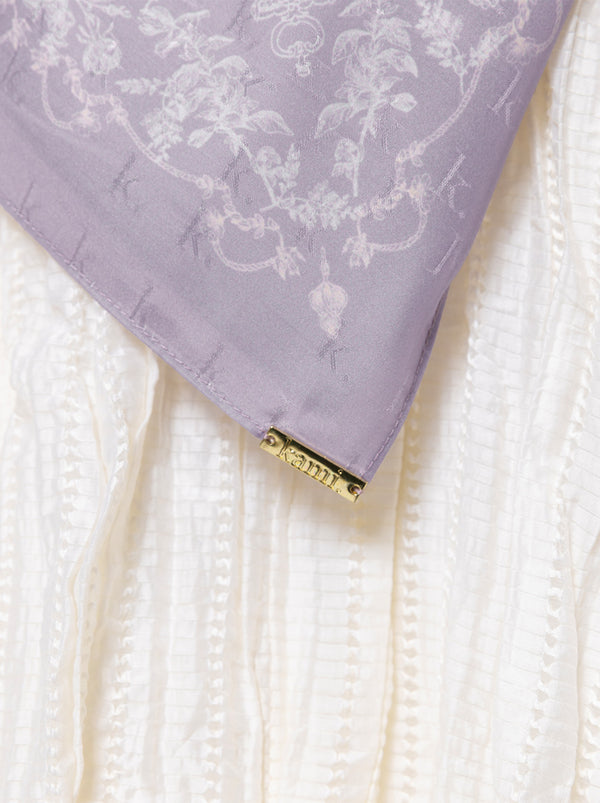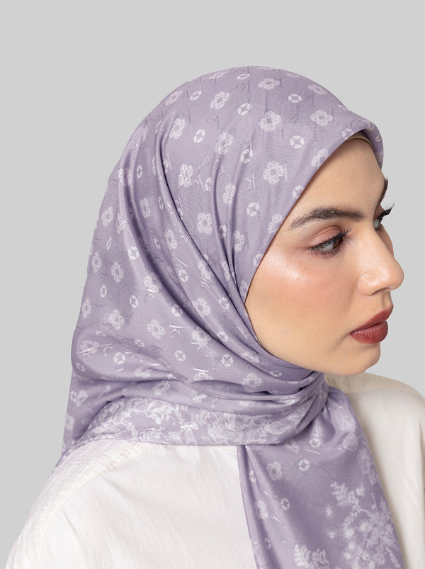 Scarf bagi penyuka gaya simple, Nola Scarf hadir dengan warna-warna netral, monogram dan motif floral kecil dalam bahan jacquard Kami.