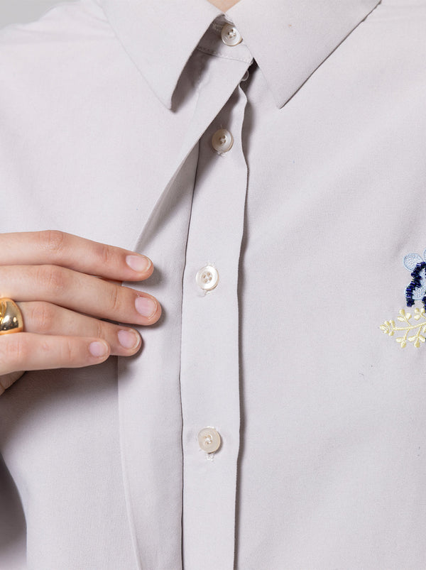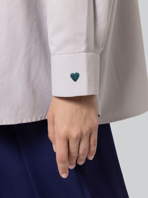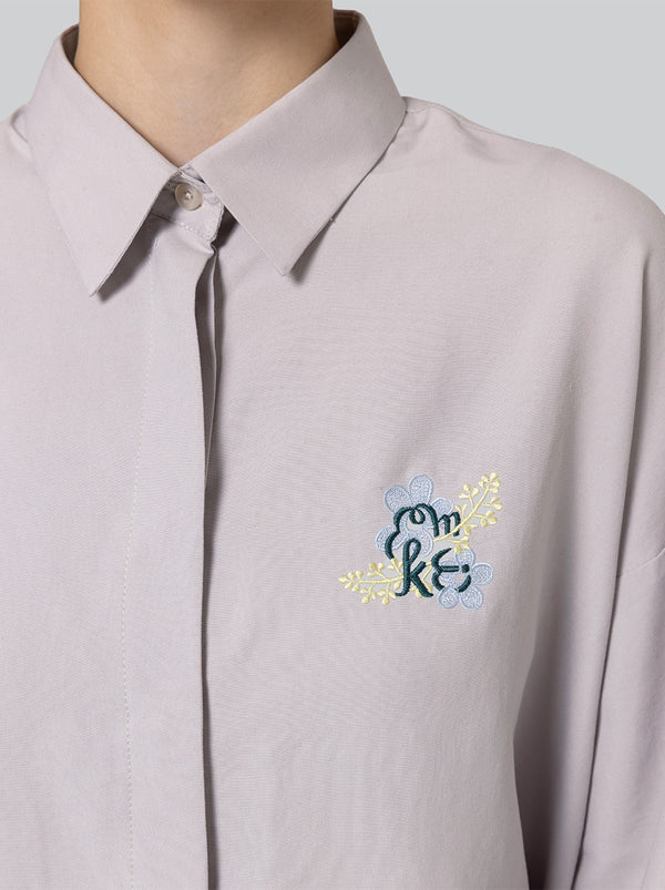 Classic shirt meets candied colors on Nue Top. Featuring velvety smooth material, Kami monocurve and bow embroideries.