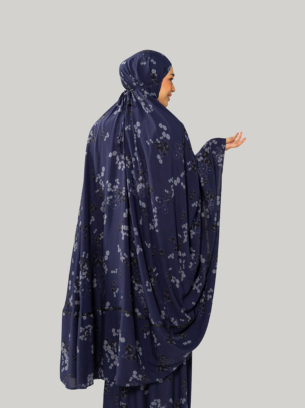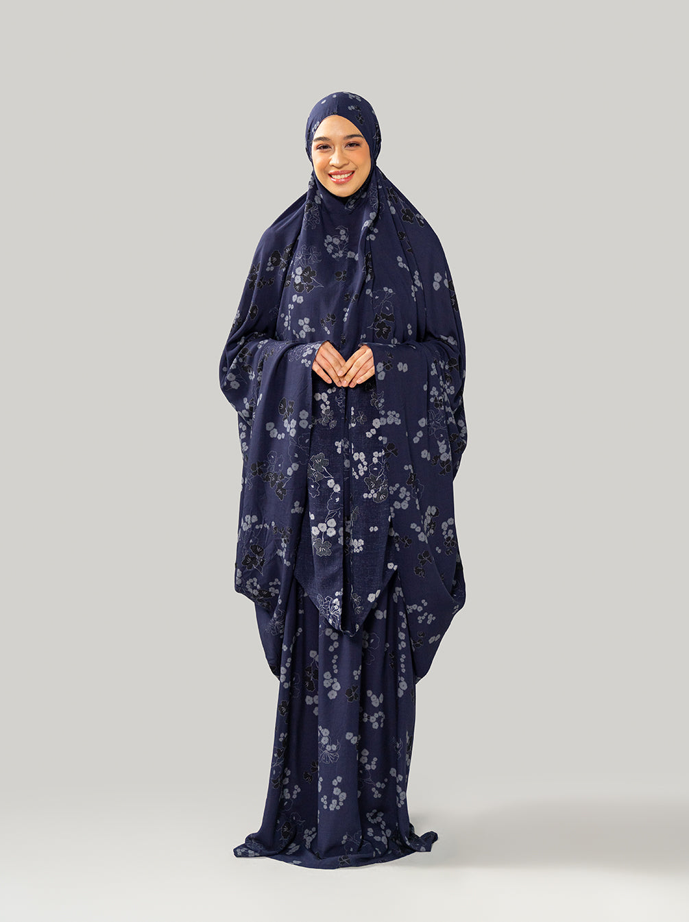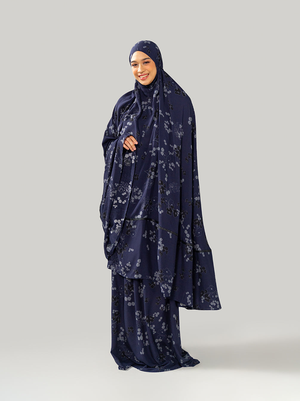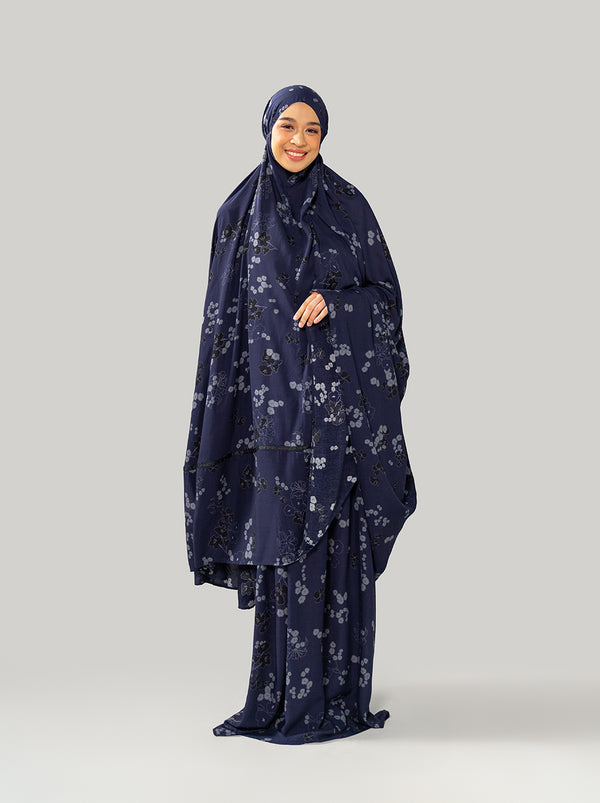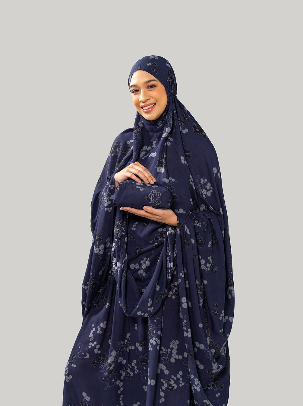A Raya special prayer set with dainty florals and top handle pouch. Lightweight, comfortable, compact for traveling.