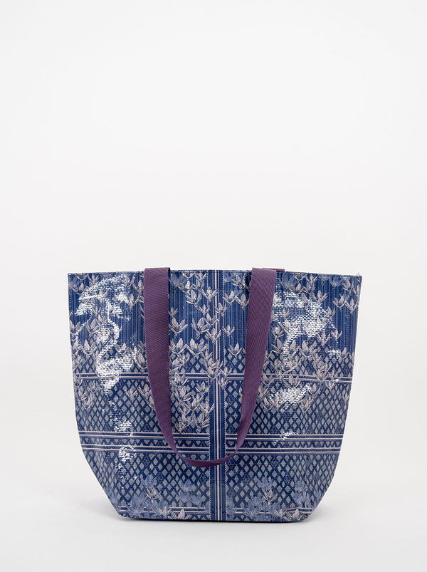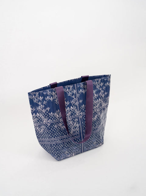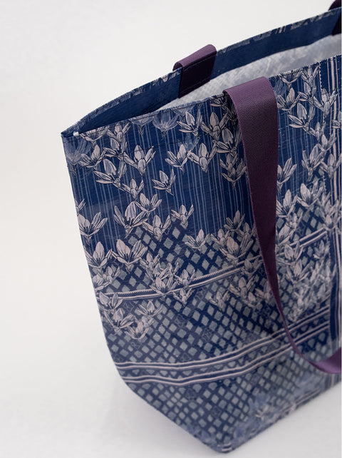 Tas tote ini menampilkan pola elegan Orva Raya yang terdiri dari bunga rain lily yang tersebar. Terbuat dari bahan nonwoven terlaminasi tahan air, tas tote ini cocok untuk memuat berbagai macam barang.