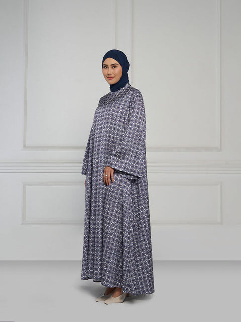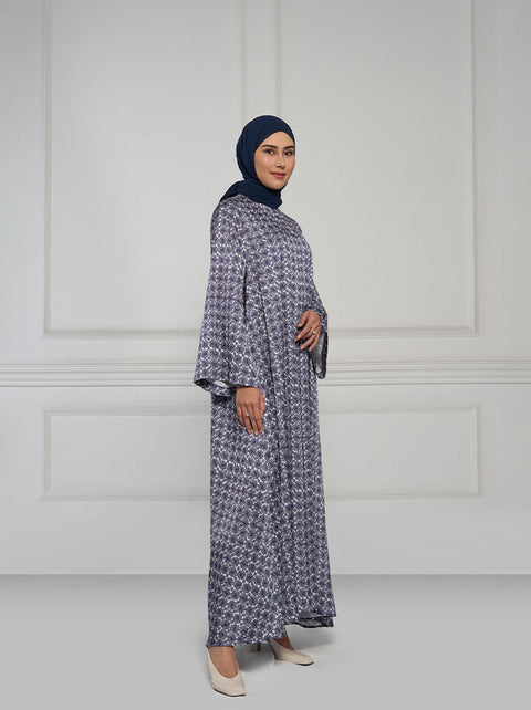 Stuns in Raya with the elegant Rania dress. The A line cutting stuns in the beautiful satin jacquard, with wide sleeves and back buttons.