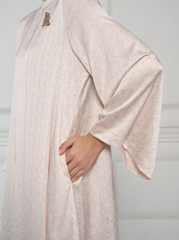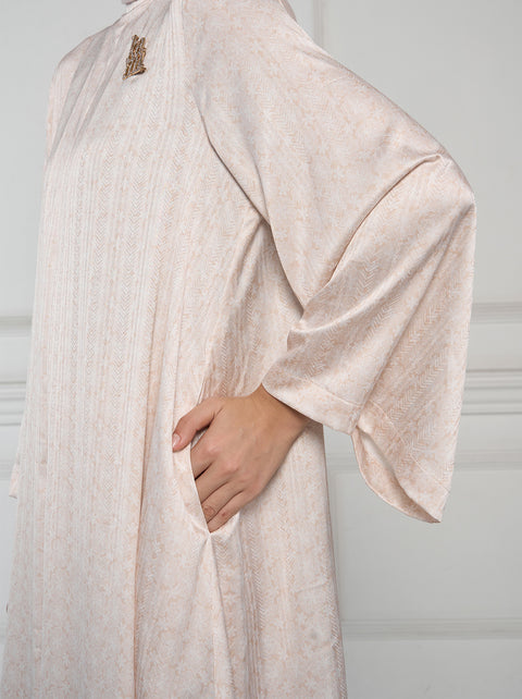 Stuns in Raya with the elegant Rania dress. The A line cutting stuns in the beautiful satin jacquard, with wide sleeves and back buttons.