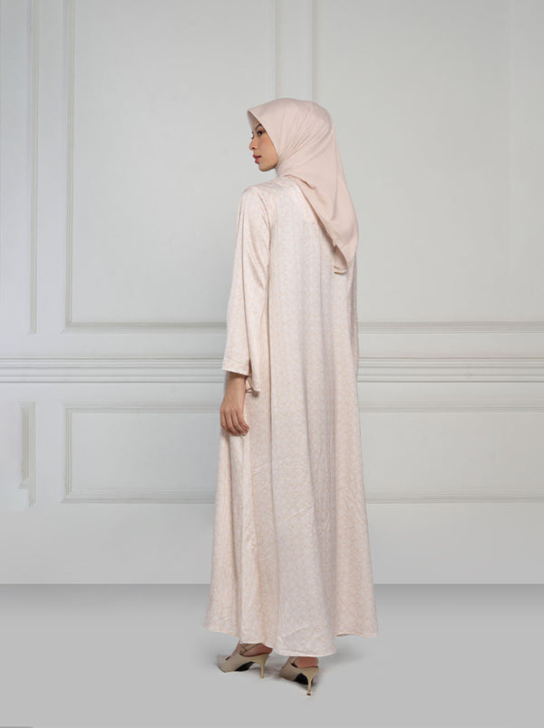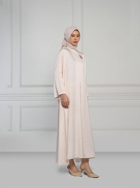Tampil elegan di momen Raya dengan Rania dress. Model A line dengan bahan satin jacquard, dilengkapi dengan lengan lebar dan bukaan kancing belakang.