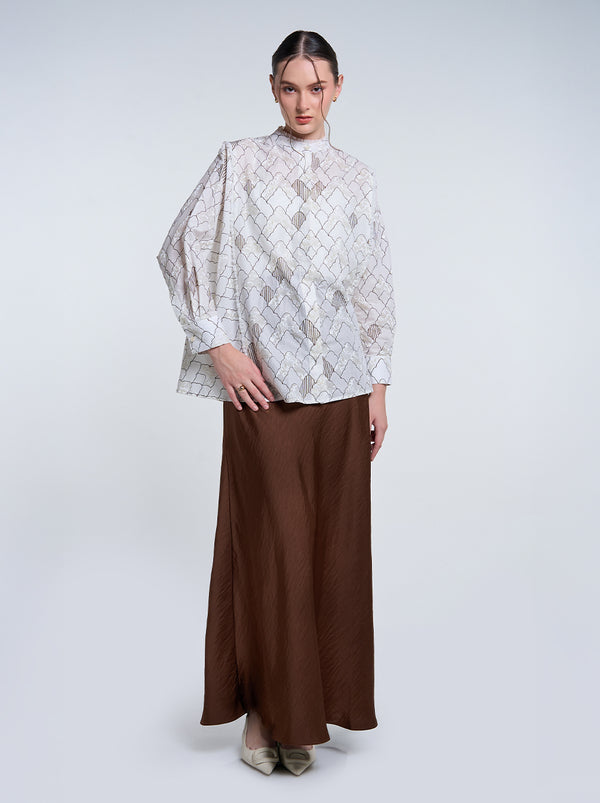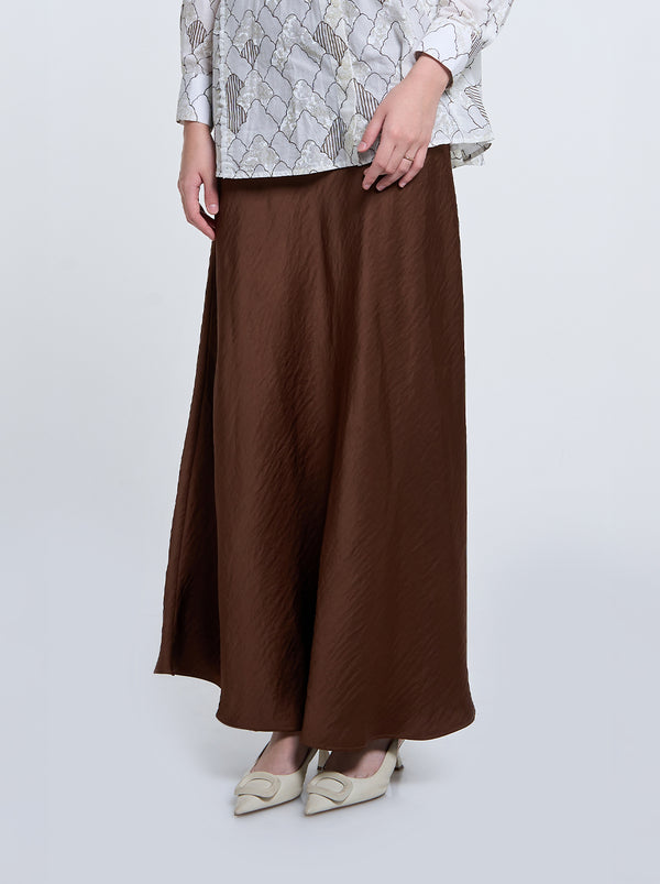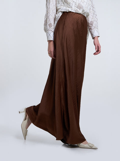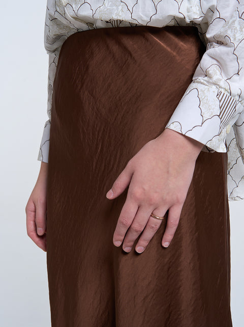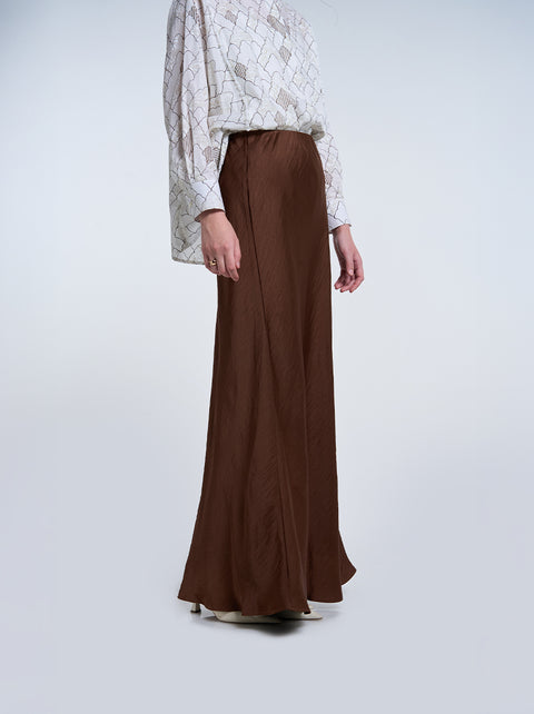 SATIN BIAS CUT SKIRT CHOCO BROWN