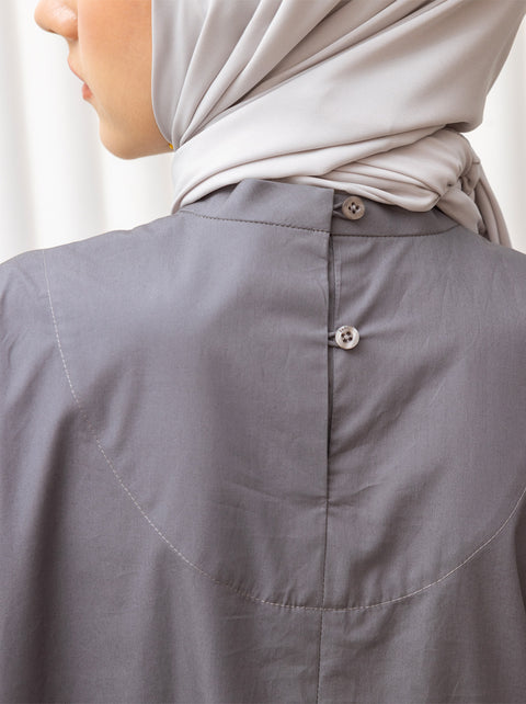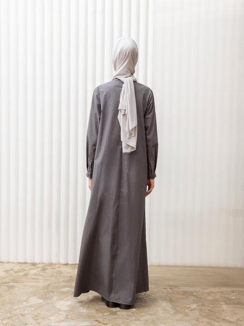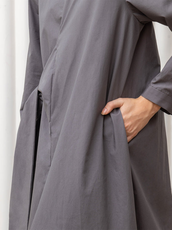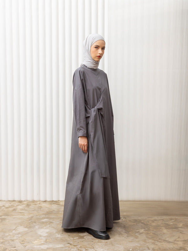 The straight, modest dress features bow detailing in Katla apparel fashion: designed to disrupt, inspired by life's dark and light moments.