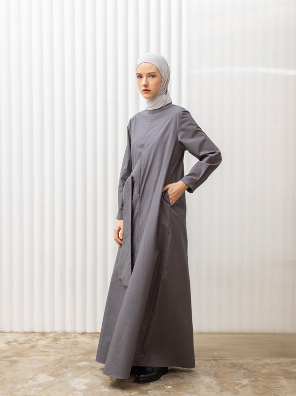 Dress lurus dengan detail pita yang membawa pesan koleksi Katla: dibuat untuk bersuara, terinspirasi dari momen-momen ""gelap"" dan ""terang"" kehidupan.