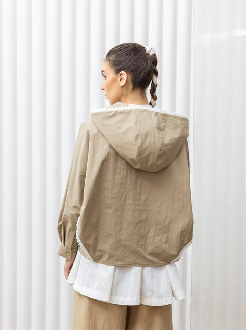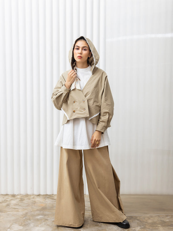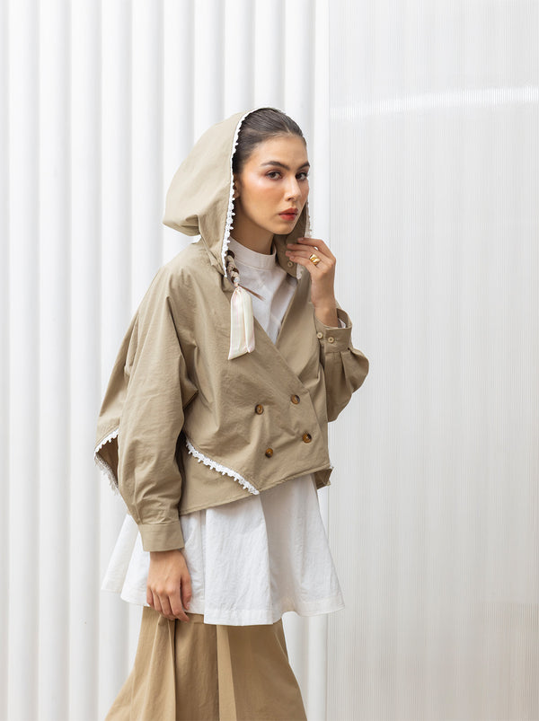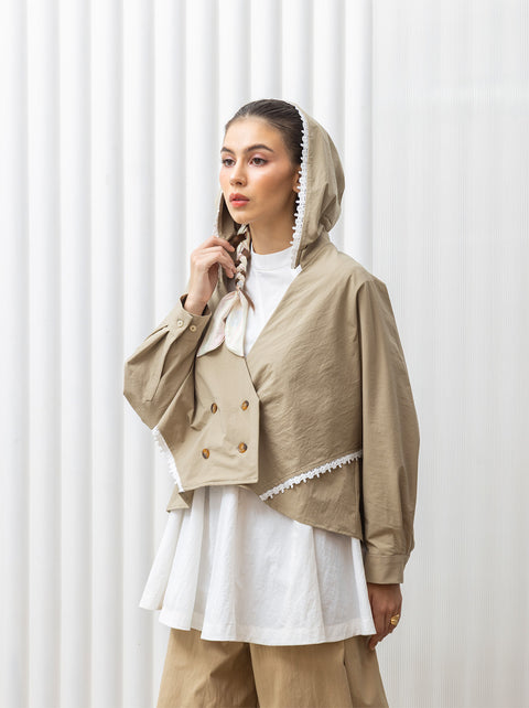 Temukan gaya unik pada Terra outer, dengan tudung yang bisa dilepas dan detail renda. Cocok untuk pecinta perspektif berbeda, persembahan Katla: Linear apparel.