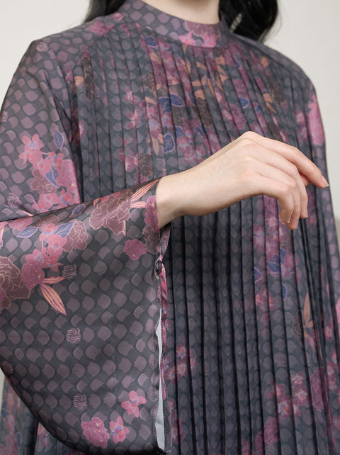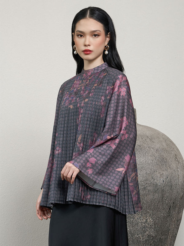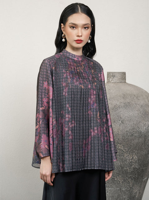 Simple with depth, Tisha top features a monochromatic color with pleats. Find a hidden button at the arm hole for adjustable fit.