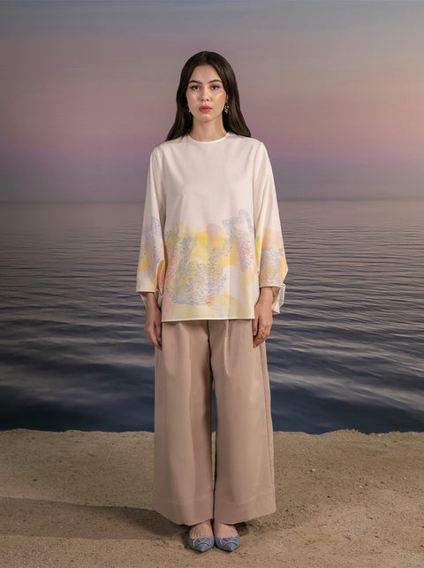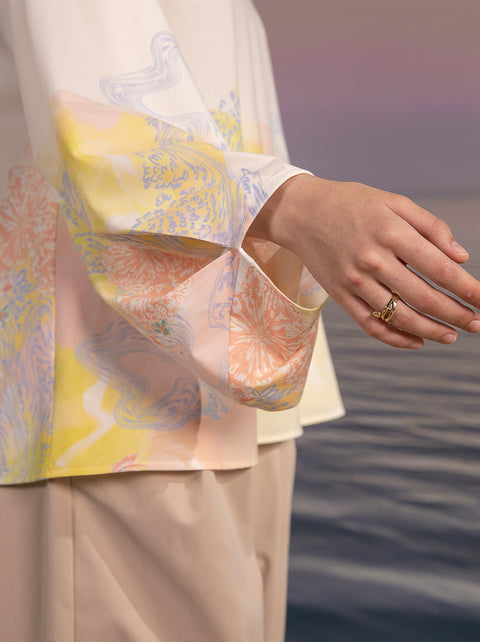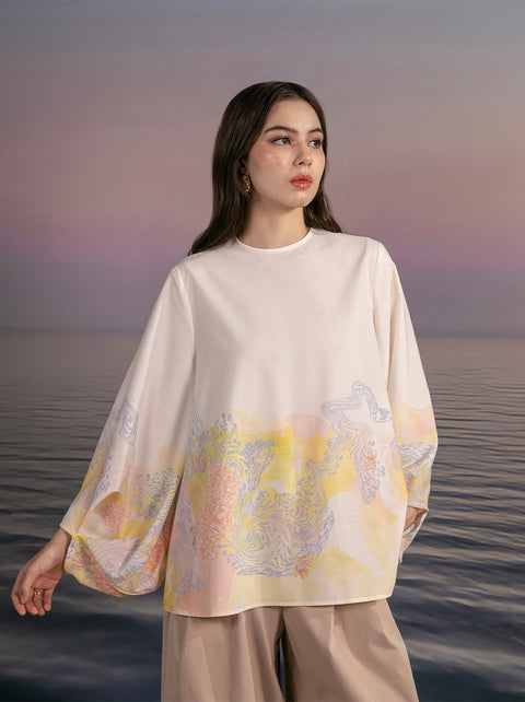 Bebas bergerak seperti motif Reverie dalam Velya top. Siluet A-line yang nyaman dilengkapi dengan lengan balon yang unik dan bukaan kancing belakang.
