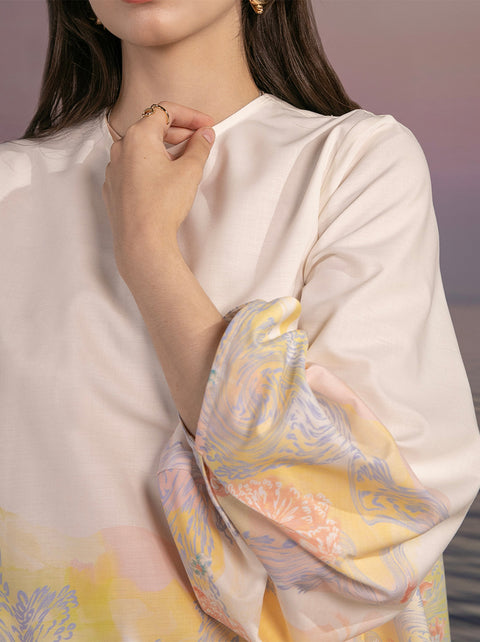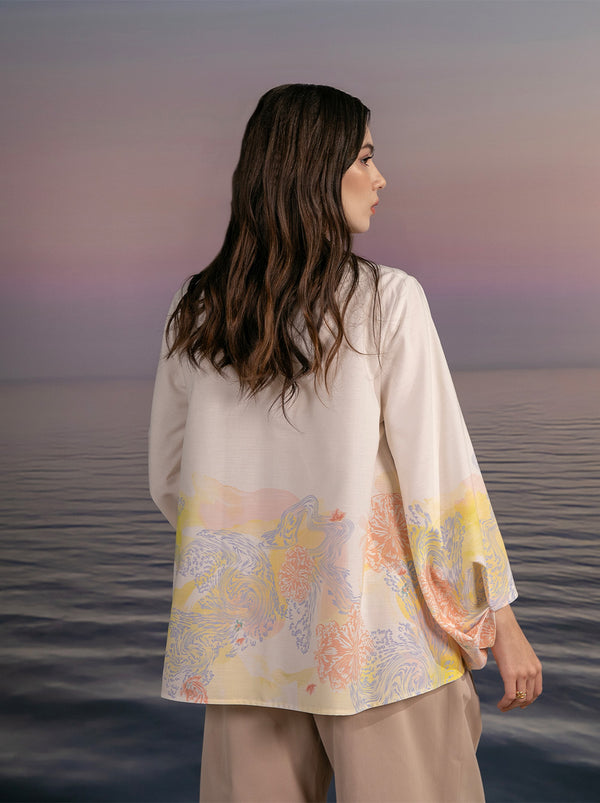 Move freely like the Reverie watercolor pattern in Velya top. The comfy A-line silhoutte features a unique puffy sleeves and back button opening.