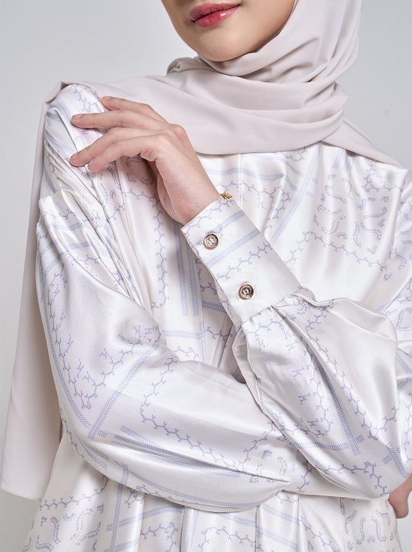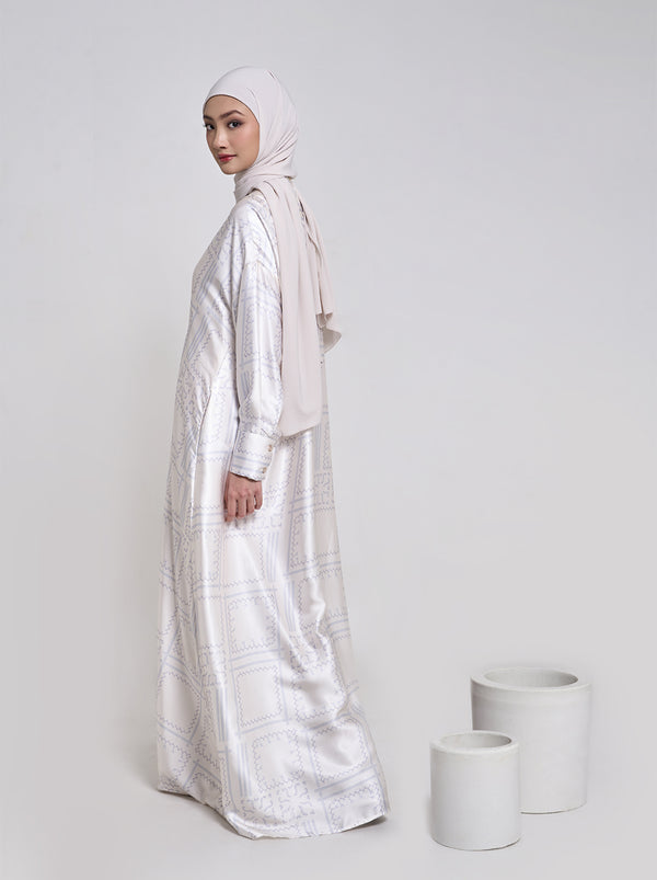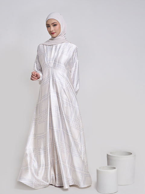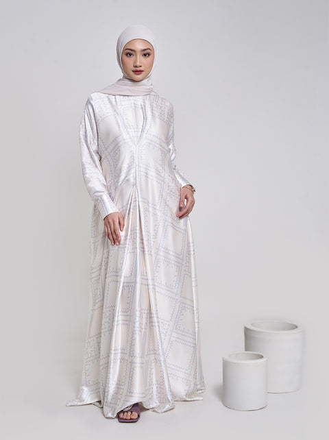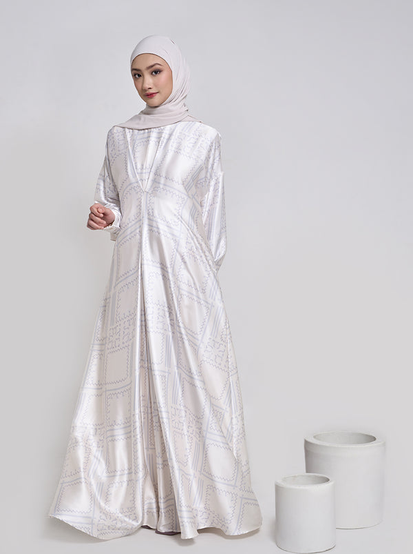 Embrace Raya in modesty and grace with Vitha dress. The flaring pleats and satin-like sheen add subtle effects to its simplicity.