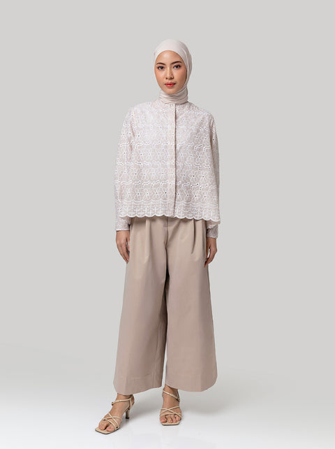 Terbuat dari material seersucker yang sejuk dan tak gampang kusut, Willa top cocok menjadi pilihan sehari-hari. Dengan kancing tersembunyi dan kerah bulat, atasan ini bisa dipakai sebagai luaran.
