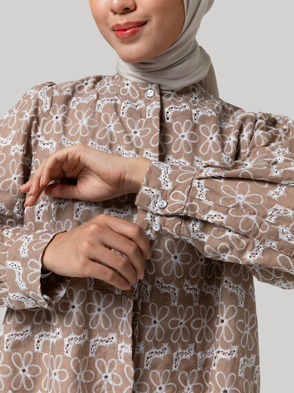 Terbuat dari material seersucker yang sejuk dan tak gampang kusut, Willa top cocok menjadi pilihan sehari-hari. Dengan kancing tersembunyi dan kerah bulat, atasan ini bisa dipakai sebagai luaran.