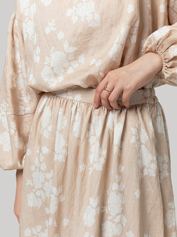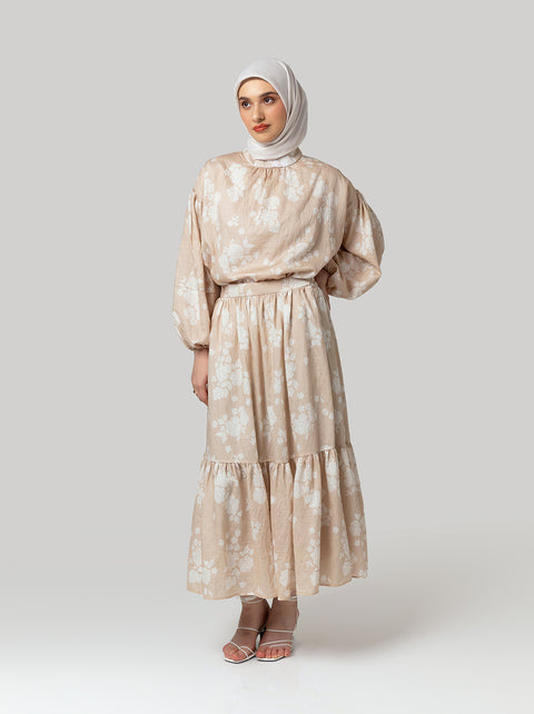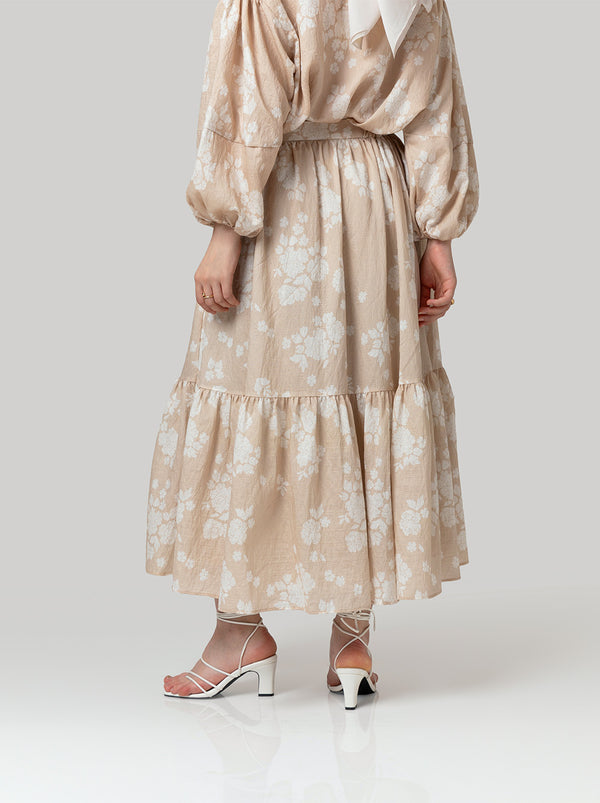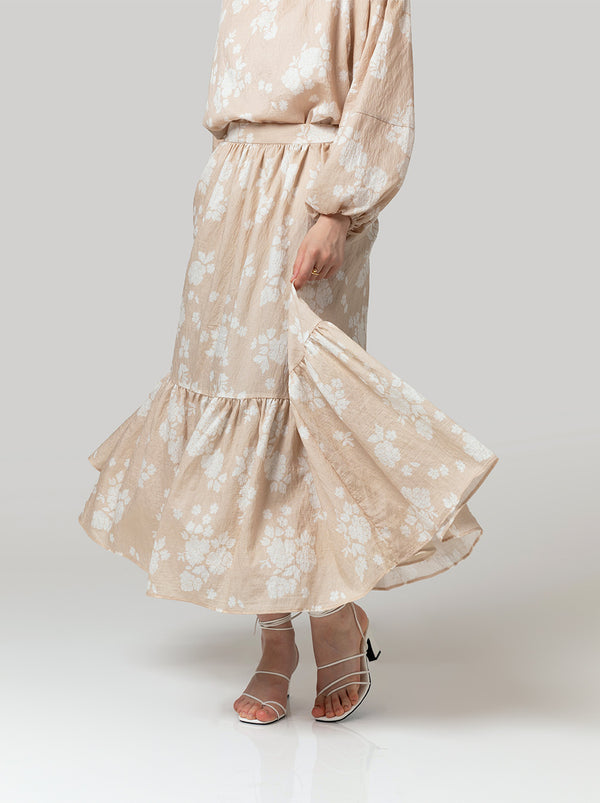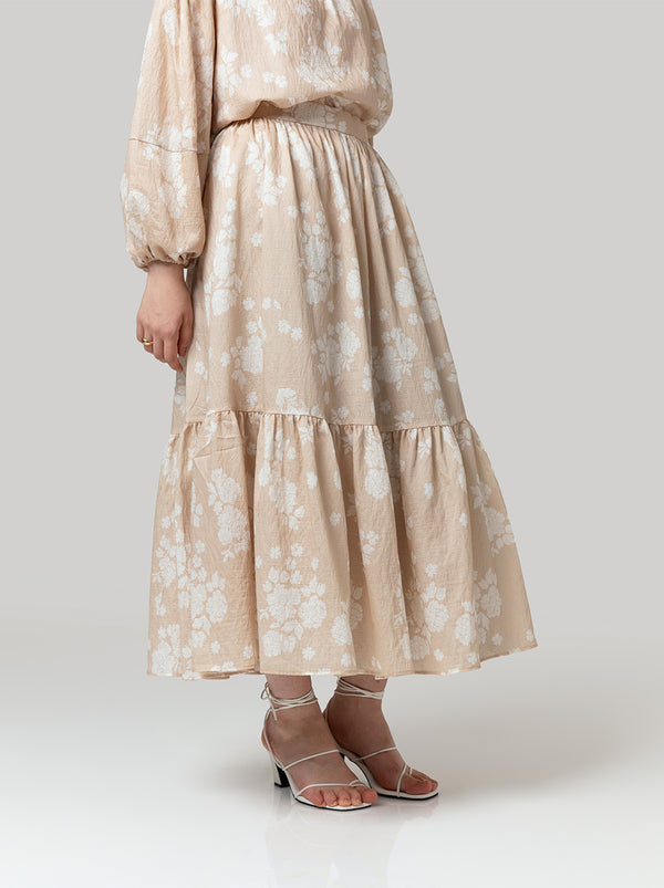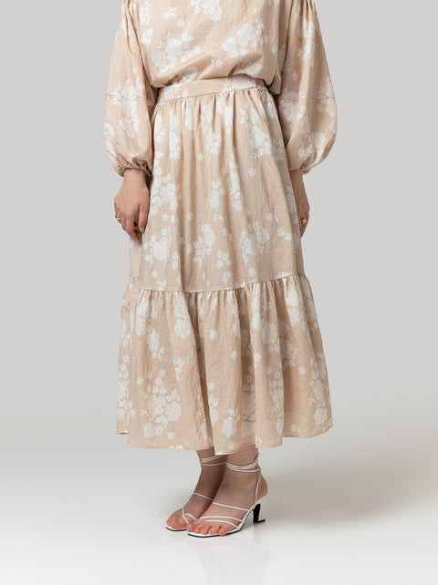 A comfy floral skirt for a playful Raya look. Xyla skirt features tiered design, and a flowy A line cutting for beautiful movement.