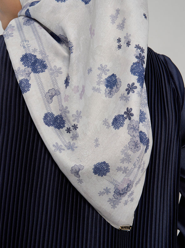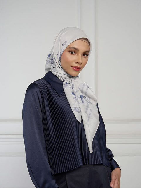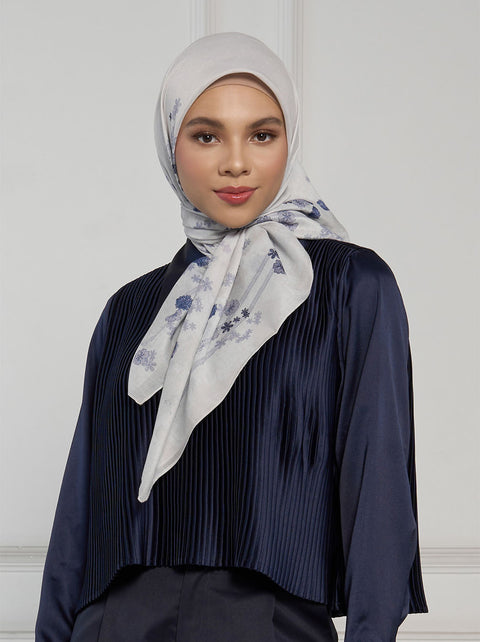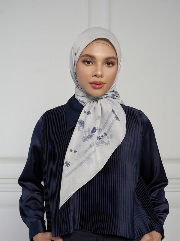 Motif floral monokromatik yang anggun menyimbolkan dalamnya makna Raya. Scarf Nabari hadir dengan lima warna pada bahan poly voile yang ringan.