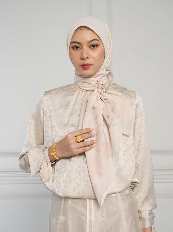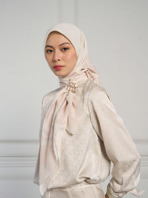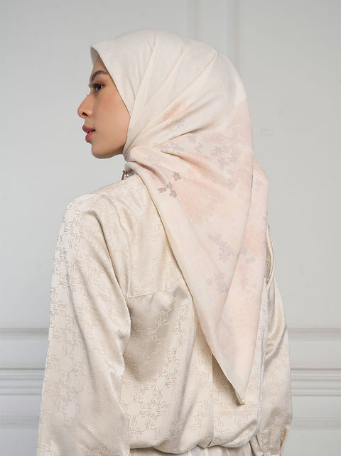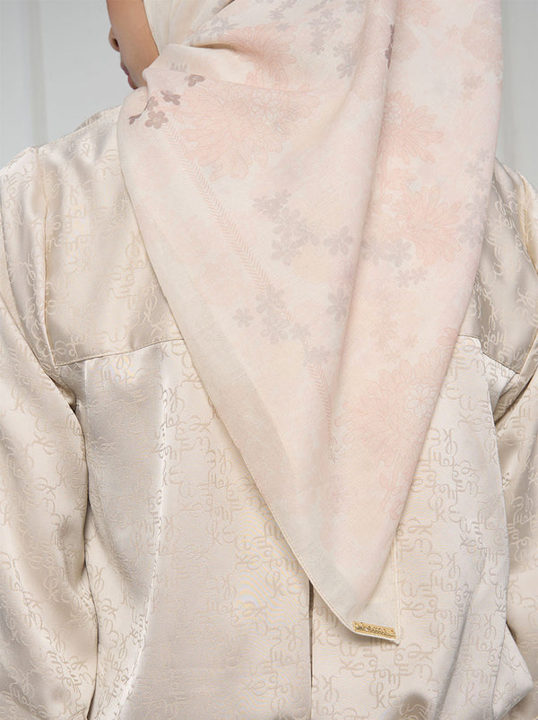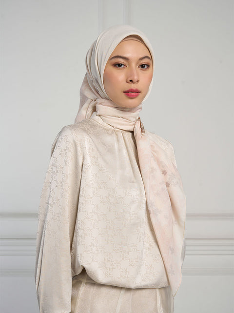 Motif floral monokromatik yang anggun menyimbolkan dalamnya makna Raya. Scarf Nabari hadir dengan lima warna pada bahan poly voile yang ringan.