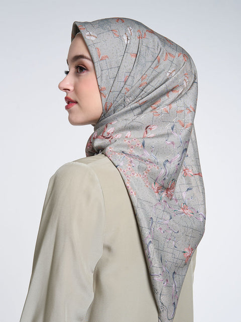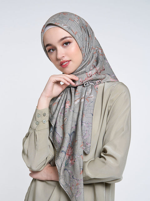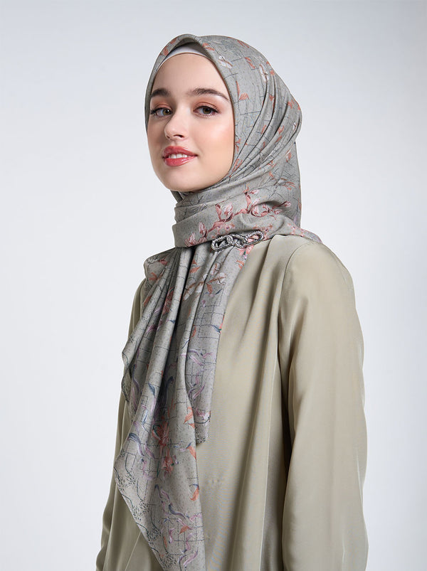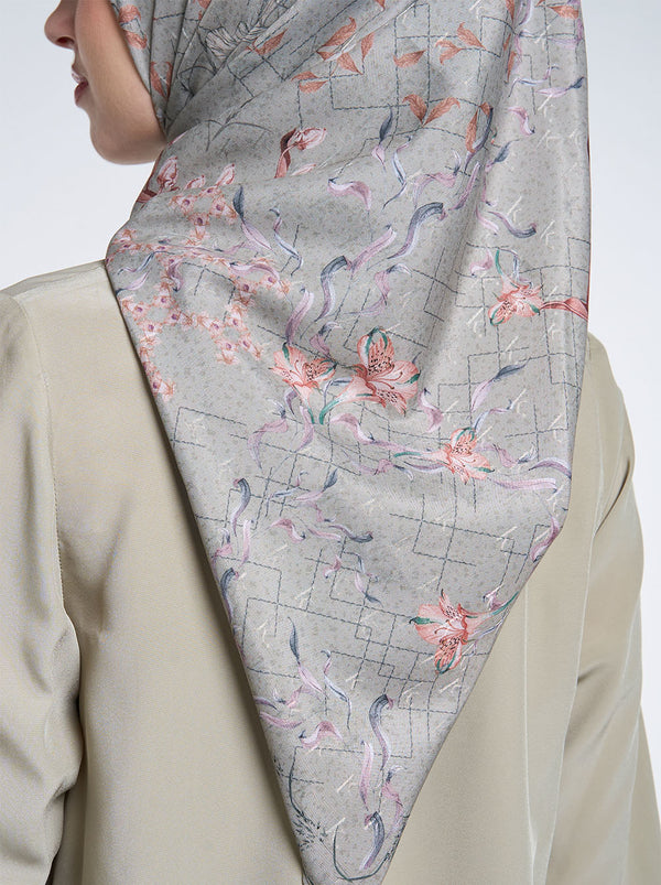 Petally Signature Scarf terbuat dari bahan voile yang ringan dan lembut, dengan pola K. jacquard yang mengilap, berpadu harmonis dengan desain floral yang cantik.