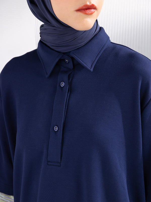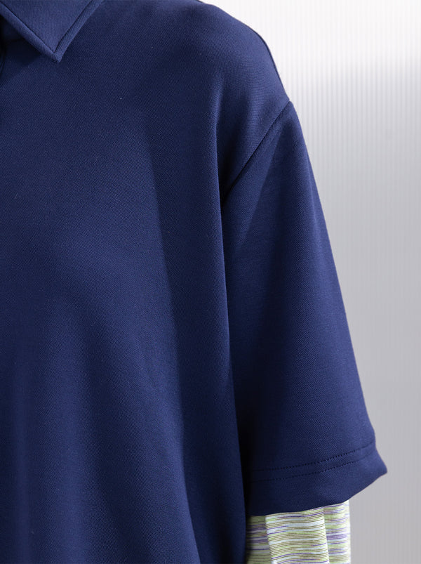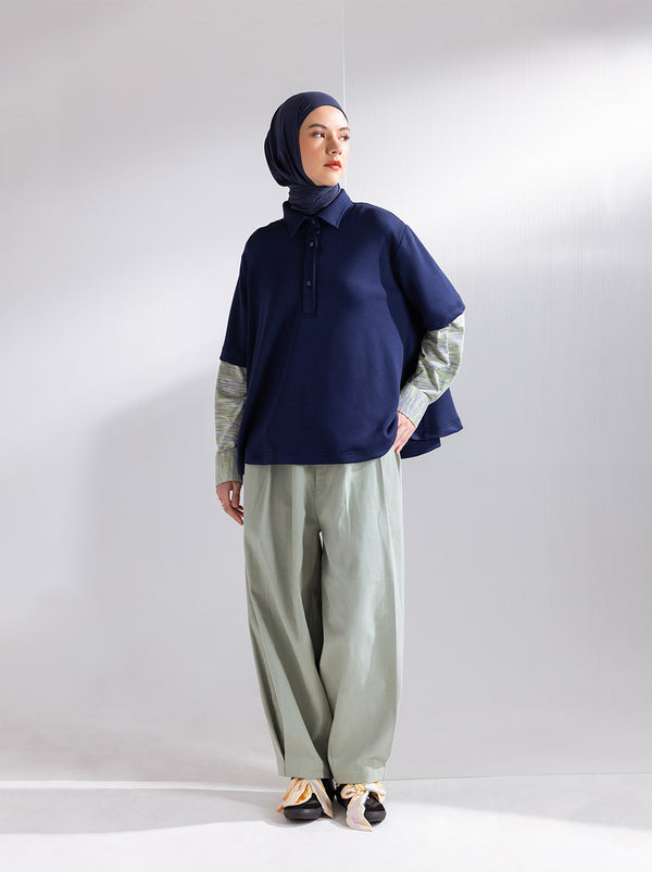 90s flair is back in Haze top, with polo-over-shirt illusion featuring Katla Linear pattern.