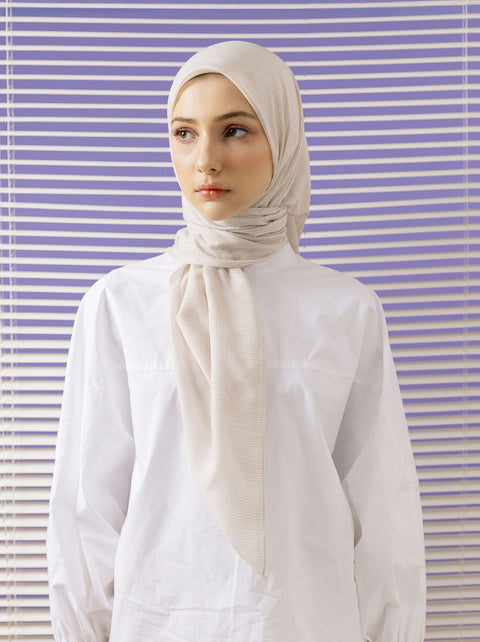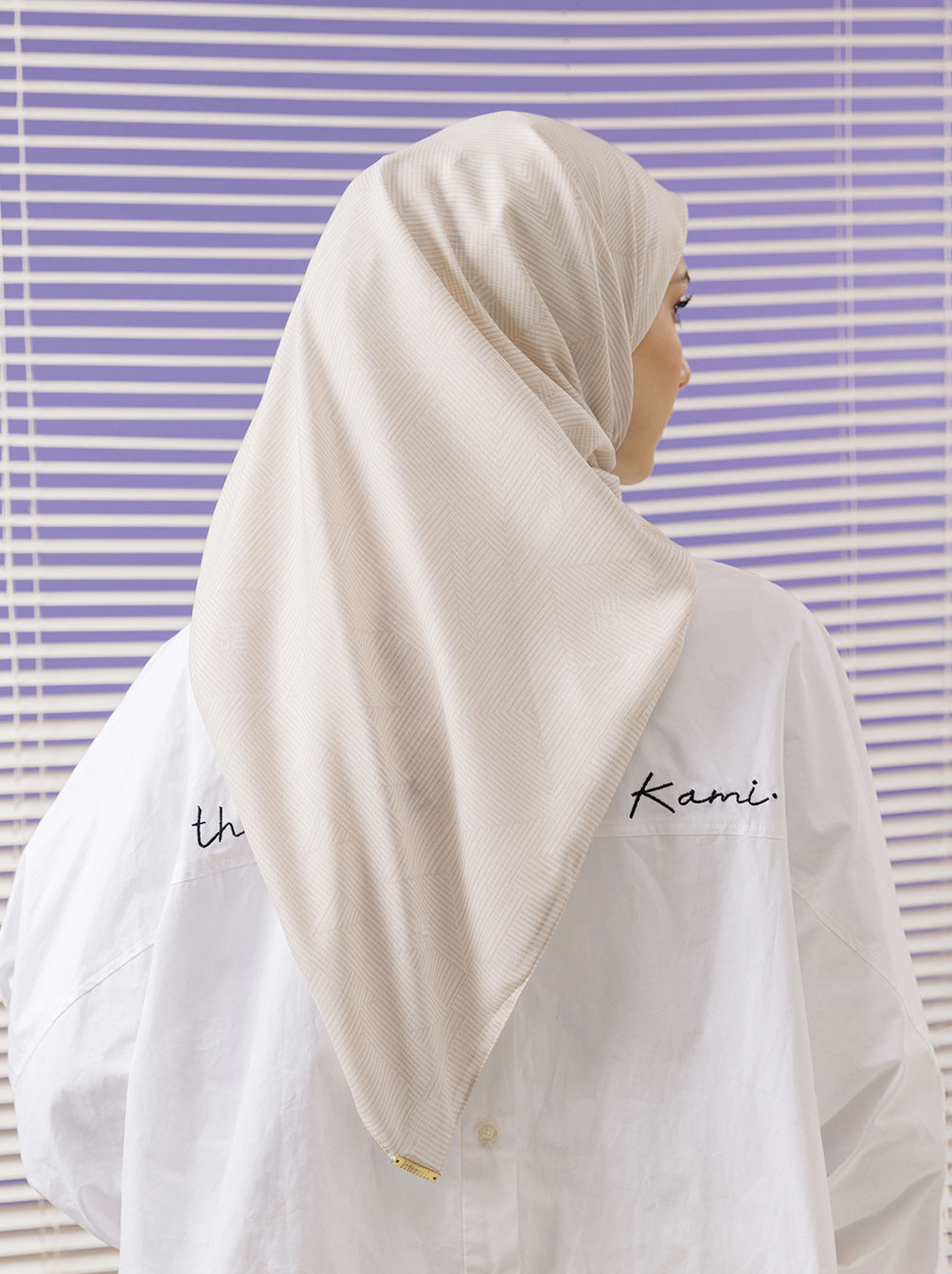 Mono Allura Scarf menggabungkan motif garis-garis klasik dengan logo K Kami untuk tampilan penuh statement yang modern. Timeless namun dinamis, cocok untuk gaya santai hingga semi formal.