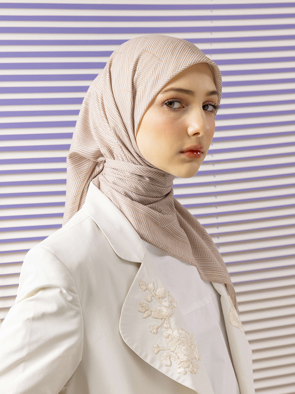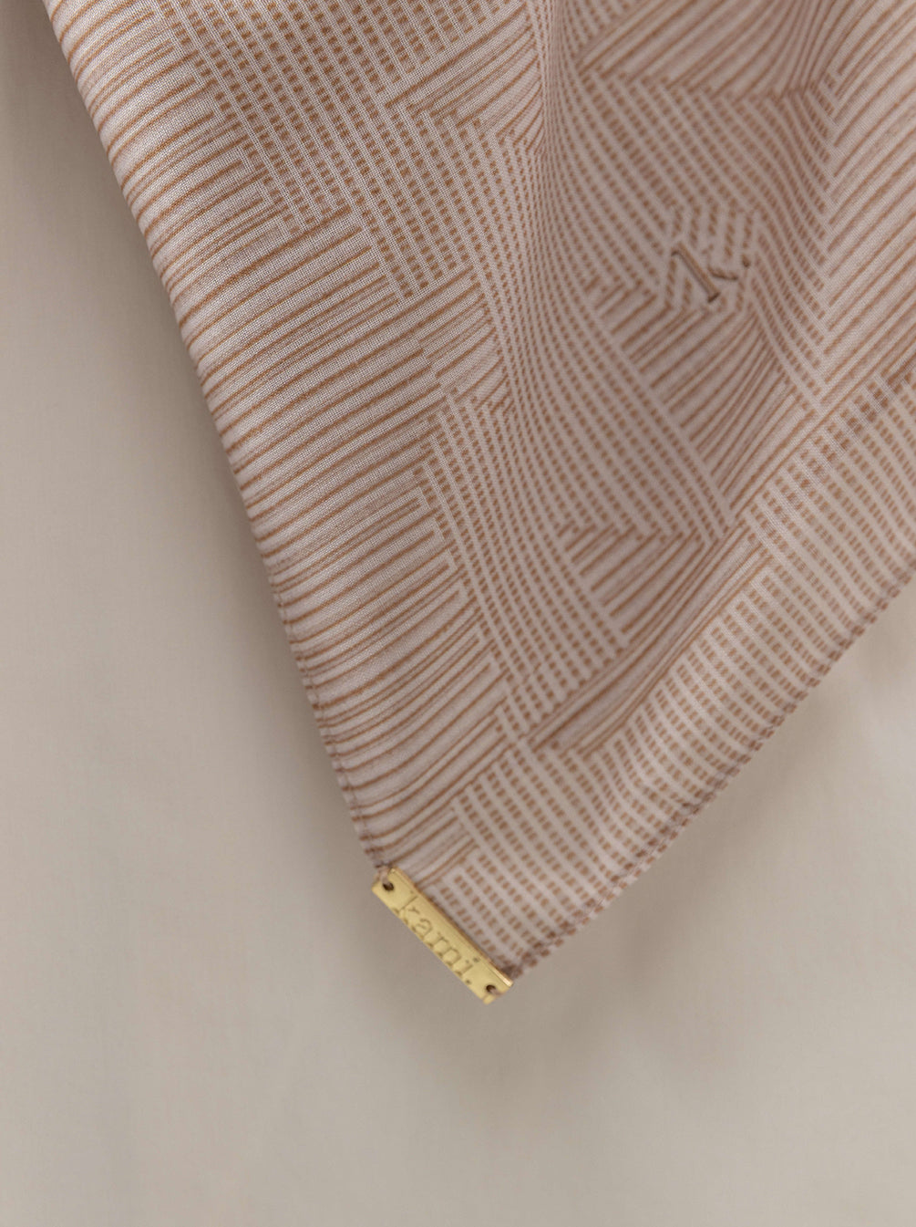 Mono Allura Scarf menggabungkan motif garis-garis klasik dengan logo K Kami untuk tampilan penuh statement yang modern. Timeless namun dinamis, cocok untuk gaya santai hingga semi formal.