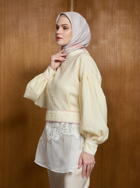 Buat statement dengan permainan volume, model cropped dan warna berani Carin top. Bahannya yang ringan memberi dimensi pada outfit dengan sentuhan tekstur dan warna kontras.