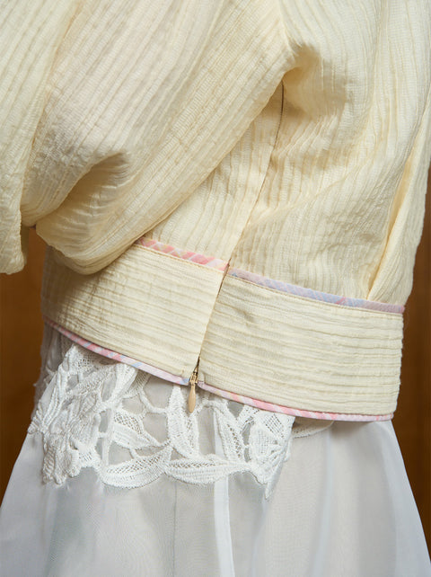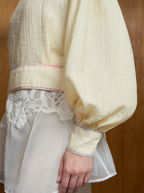 Make a statement with Carin top's volume play on the sleeves, cropped design and punching colors. The ligtweight fabric is accented with texture and a touch of contrasting colors.